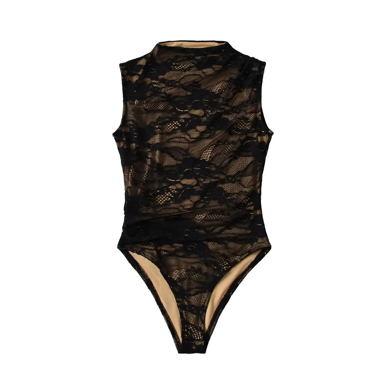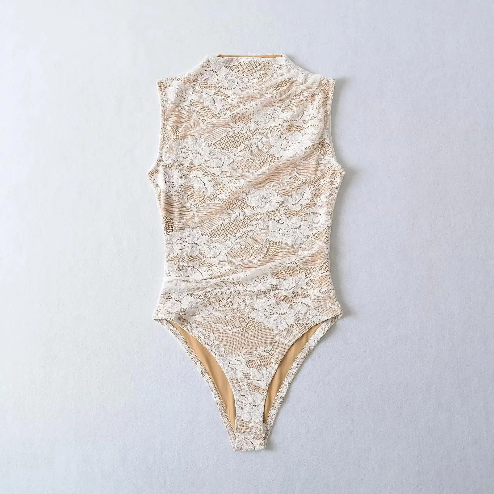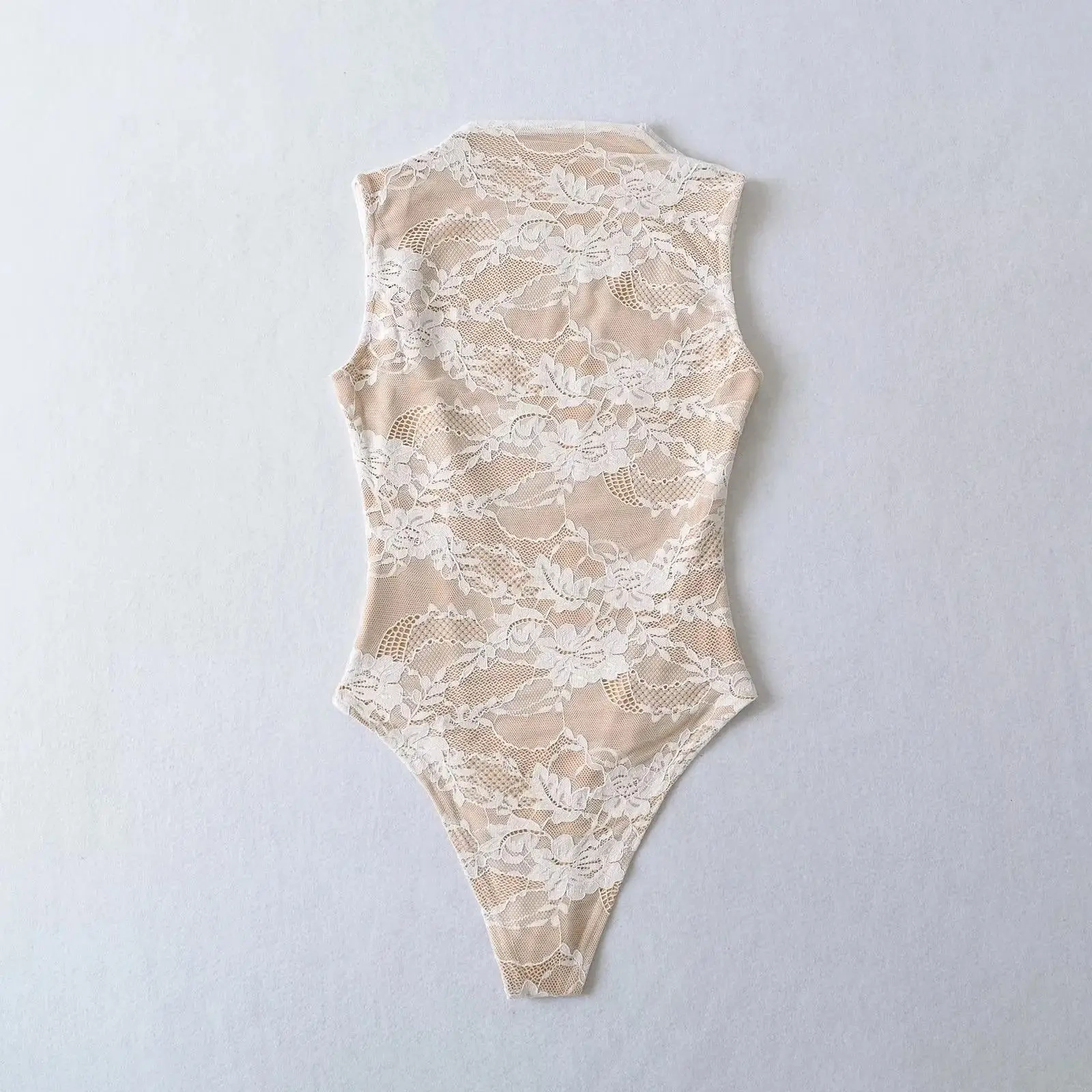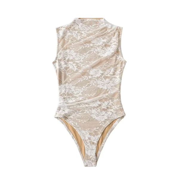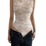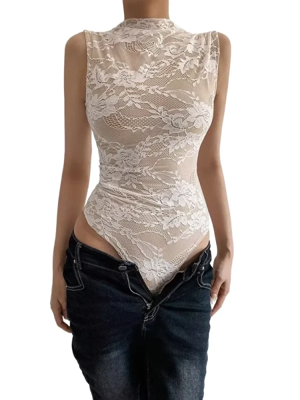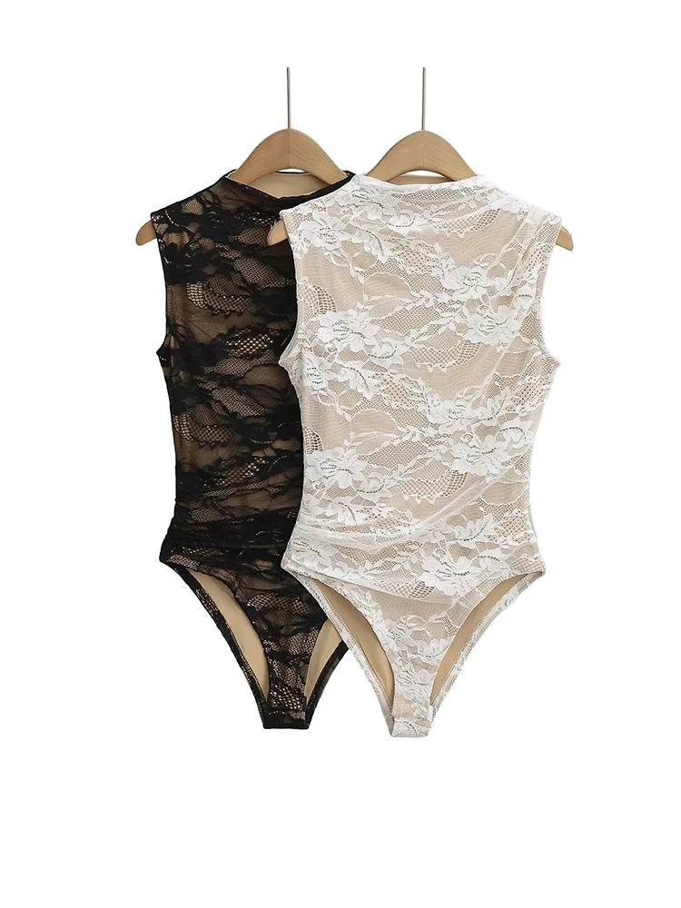 Sexy Lace Sleeveless O-neck Bodysuits Women Elastic Slim Summer Top Jumpsuits