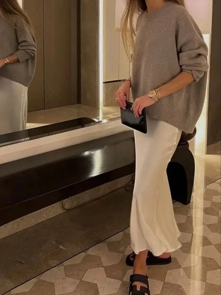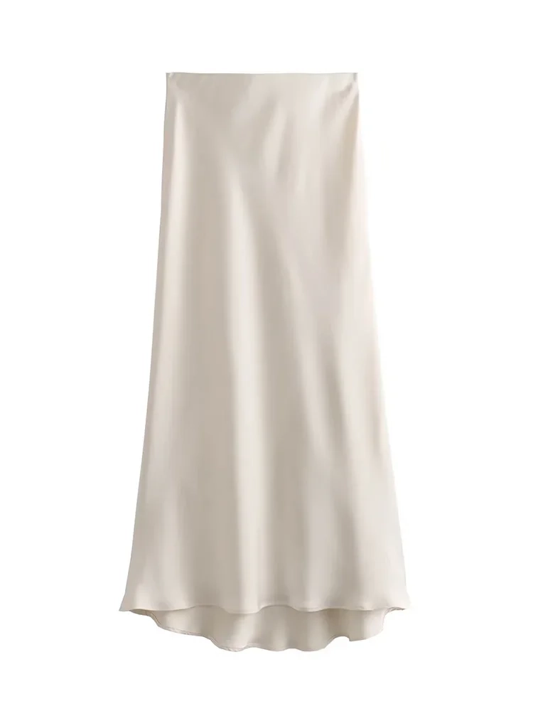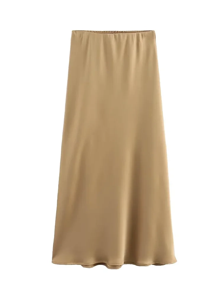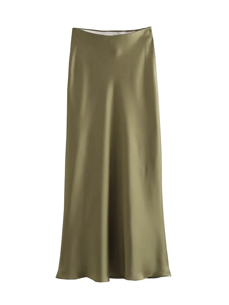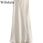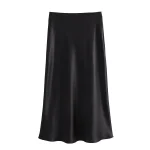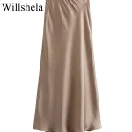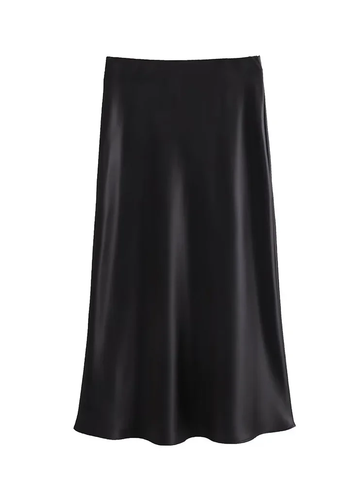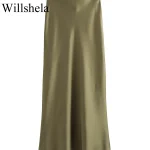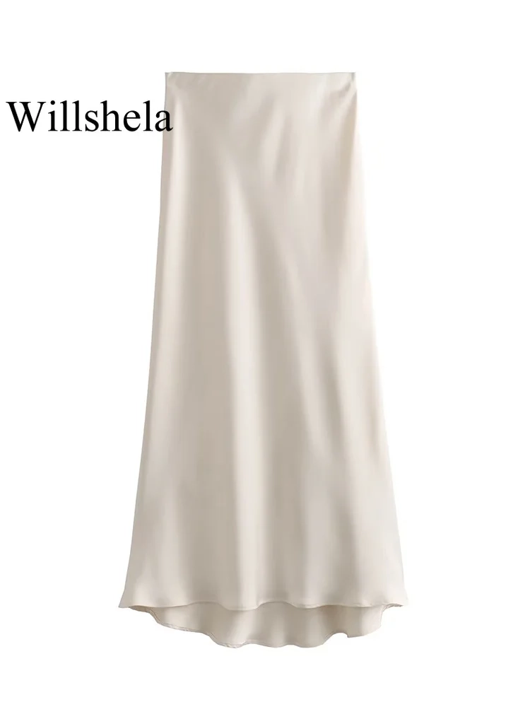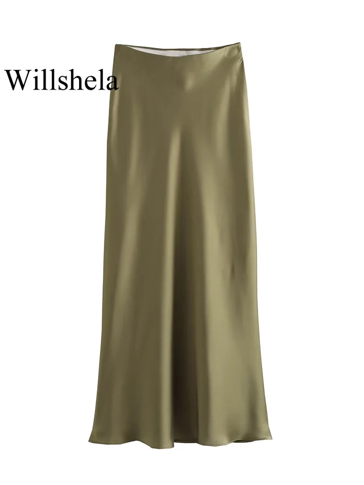 Willshela 2024 Black Satin Skirt Woman High Waist Elegant Long Skirts For Women Fashion Summer Midi Skirt Office Women’s Skirts