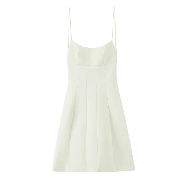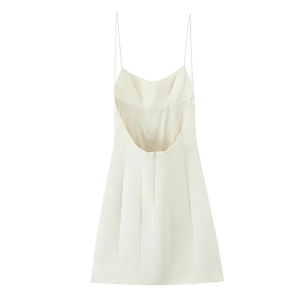 Willshela Women Fashion Beige Pleated Backless Zipper A-Line Mini Dress Vintage Thin Straps Square Collar Female Chic Dresses