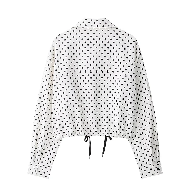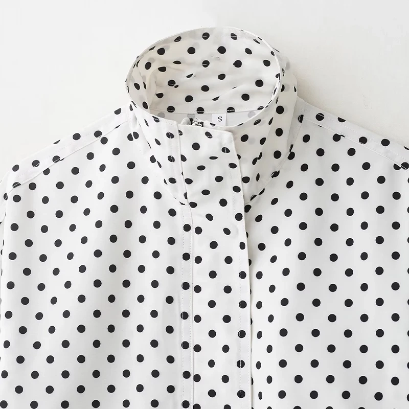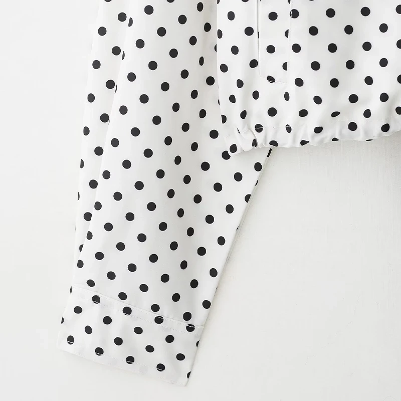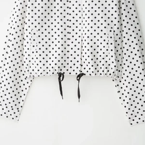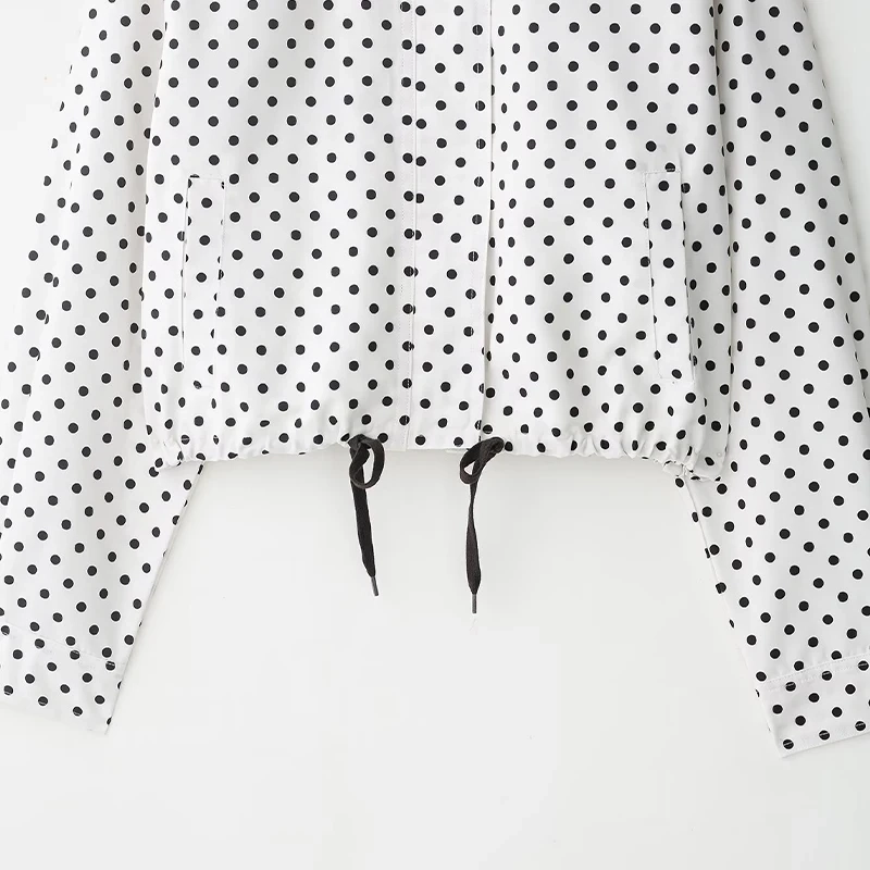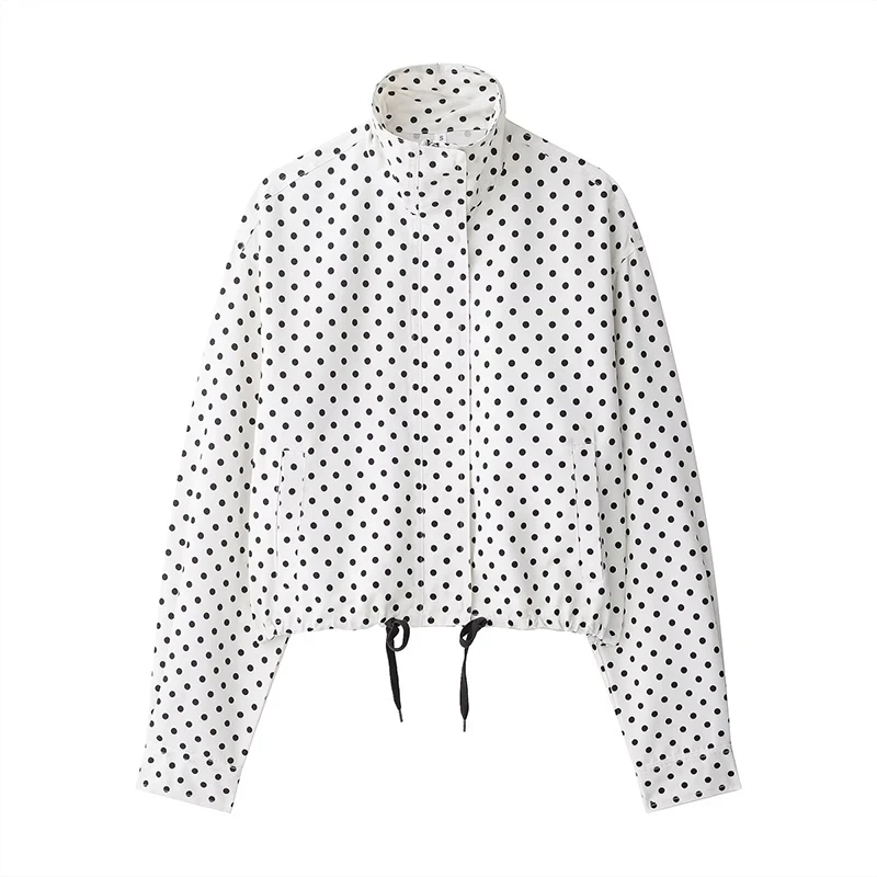 Willshela Women Fashion Dot Lace Up Front Zipper Jackets Vintage High Neck Long Sleeves Female Chic Lady Outfits