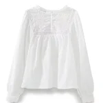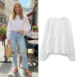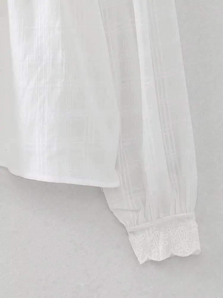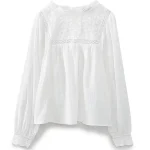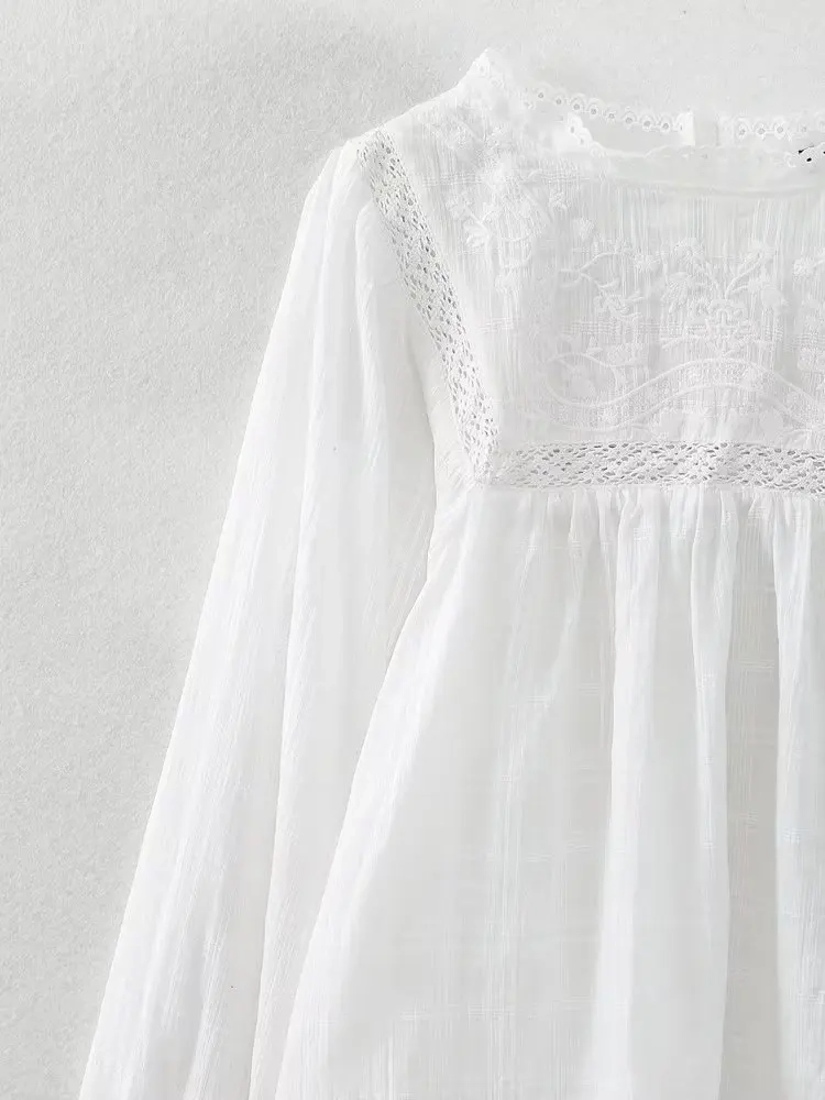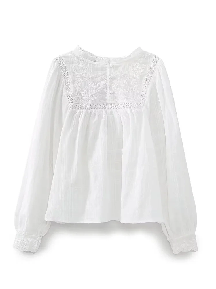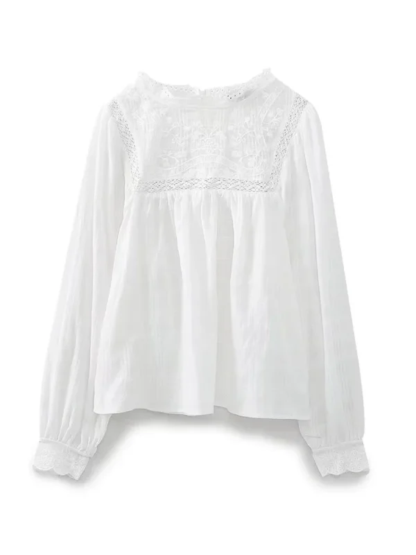 Willshela Women Fashion Embroidery White Hollow Out Blouse Vintage O-Neck Long Sleeves Female Chic Lady Shirts