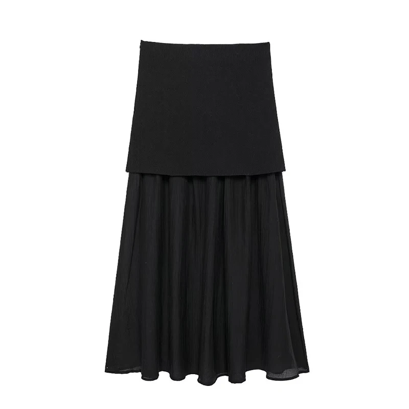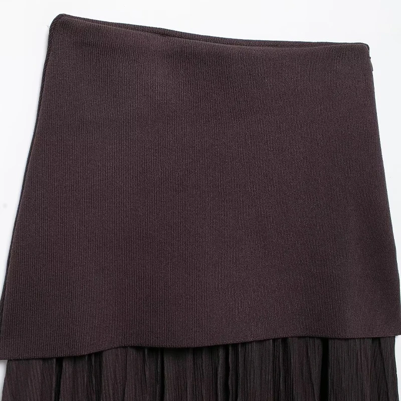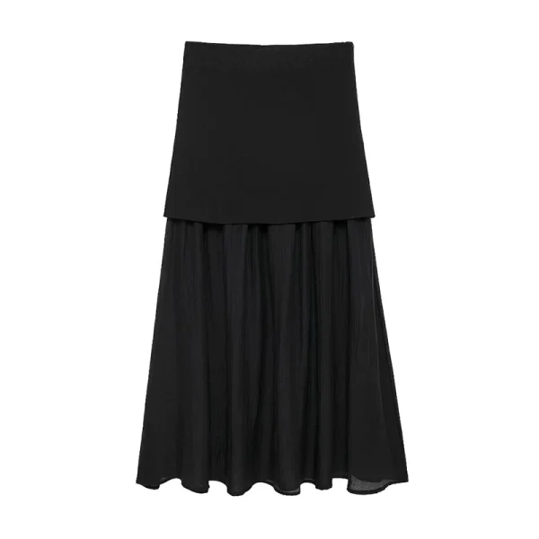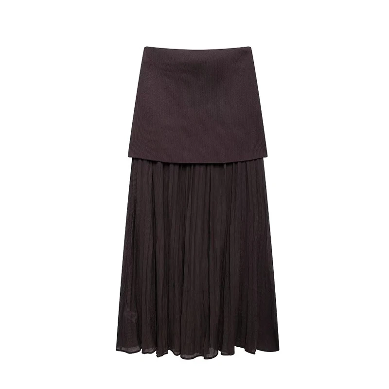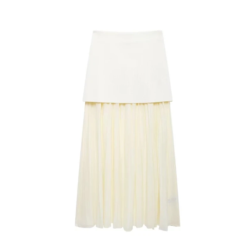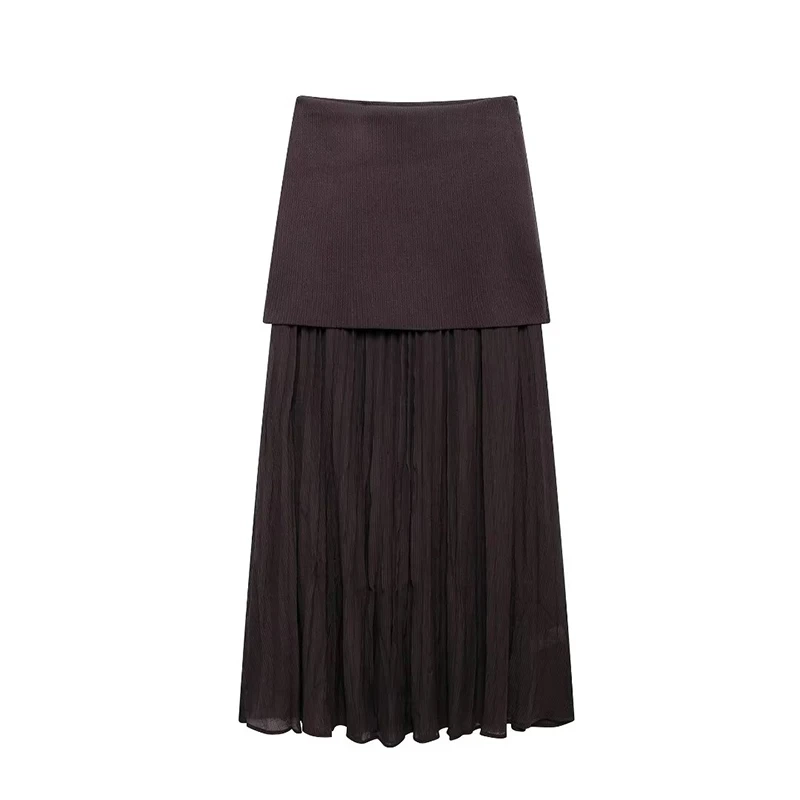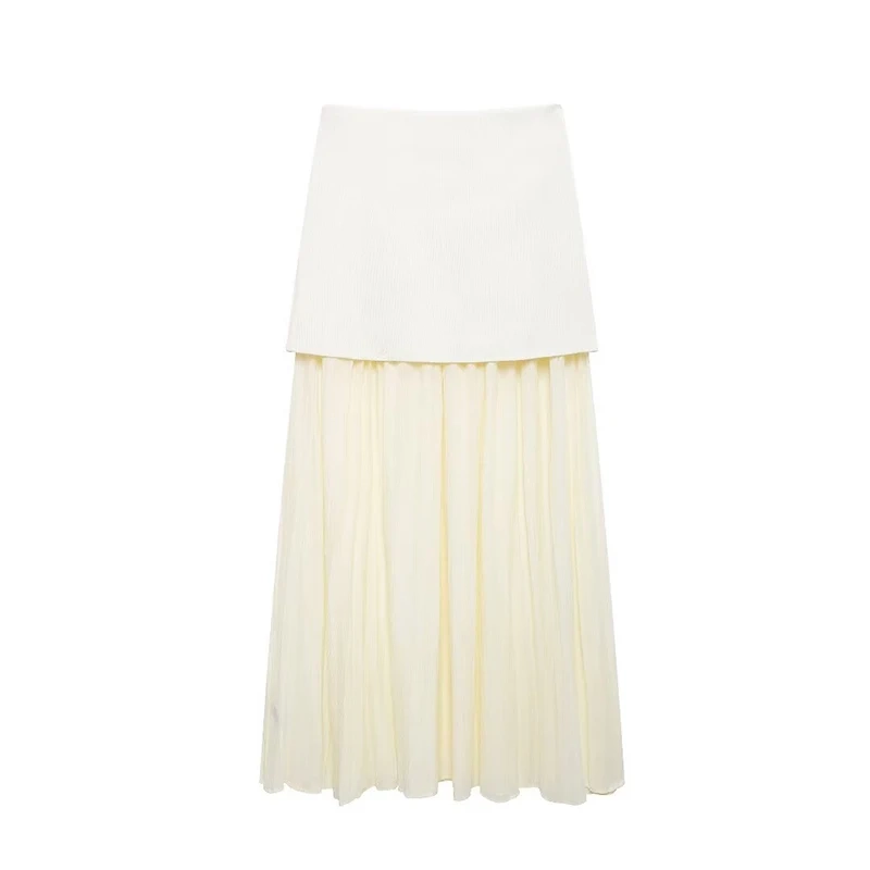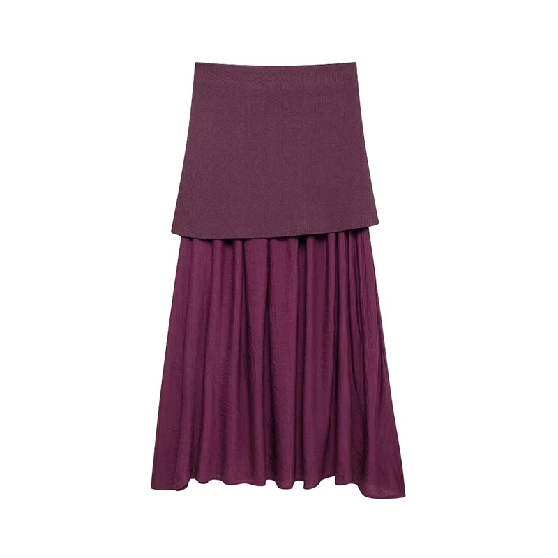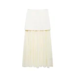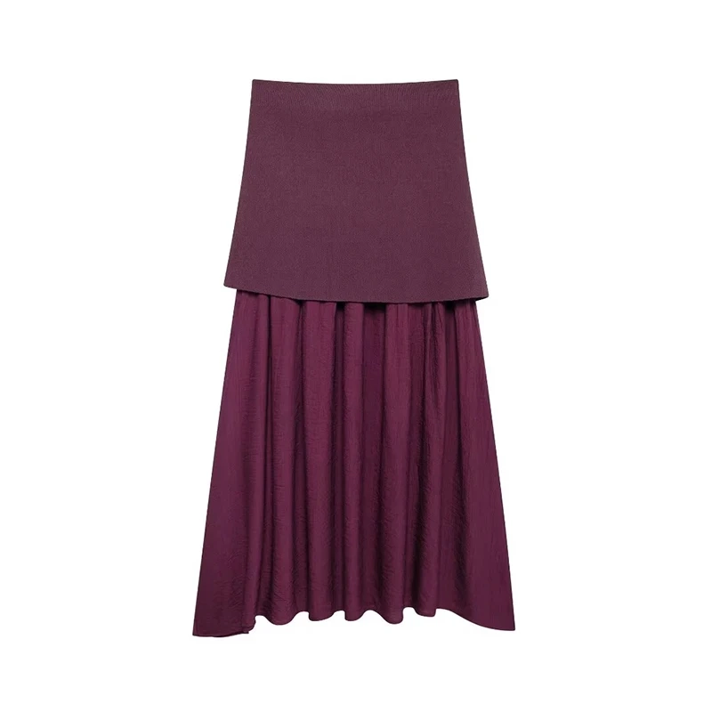 Willshela Women Fashion Knitted Patchwork Pleated Side Zipper Midi Skirt Vintage High Waist Female Chic Lady Skirts