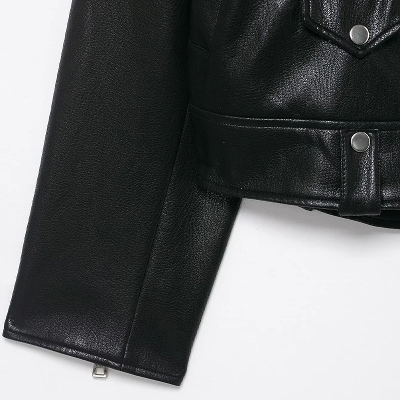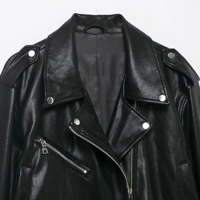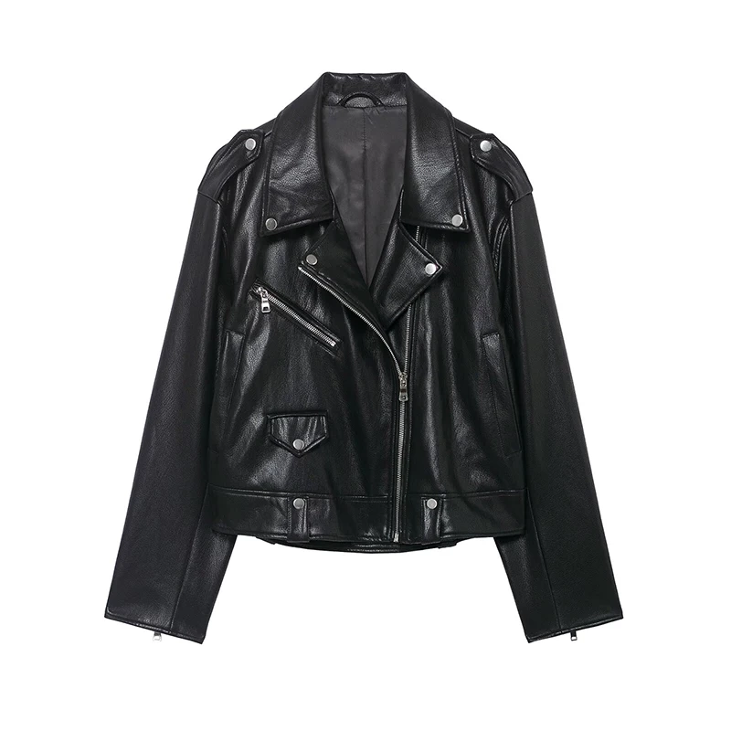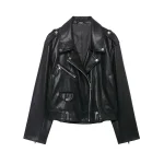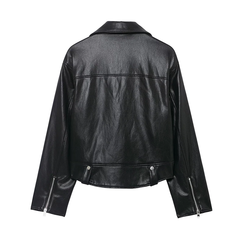 Willshela Women Fashion PU Black Front Zipper Jackets Vintage Lapel Neck Long Sleeves Female Chic Lady Outfits