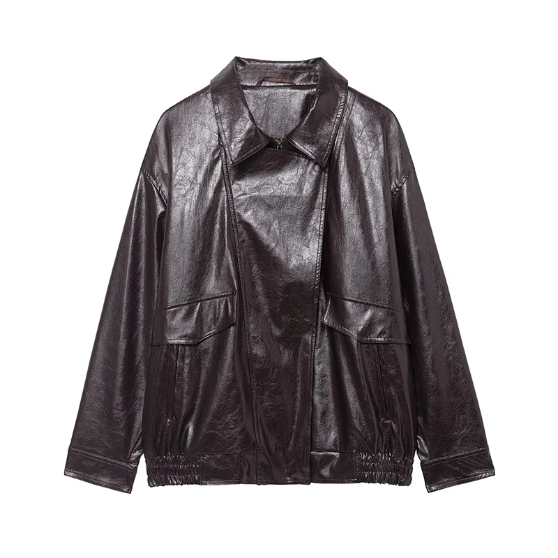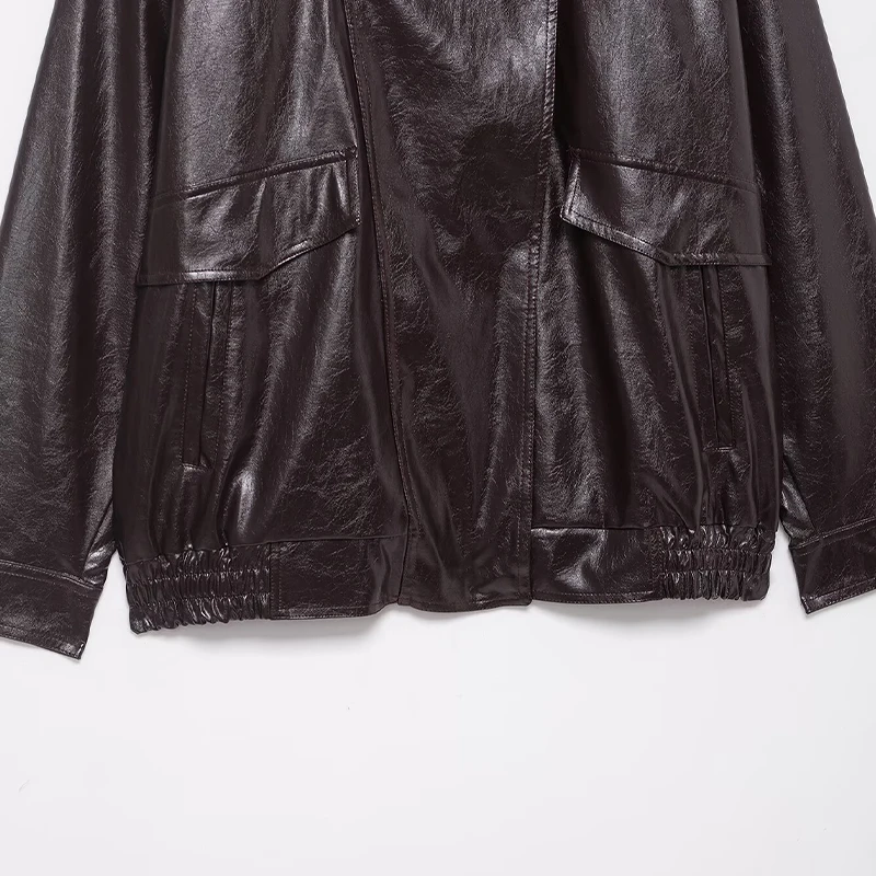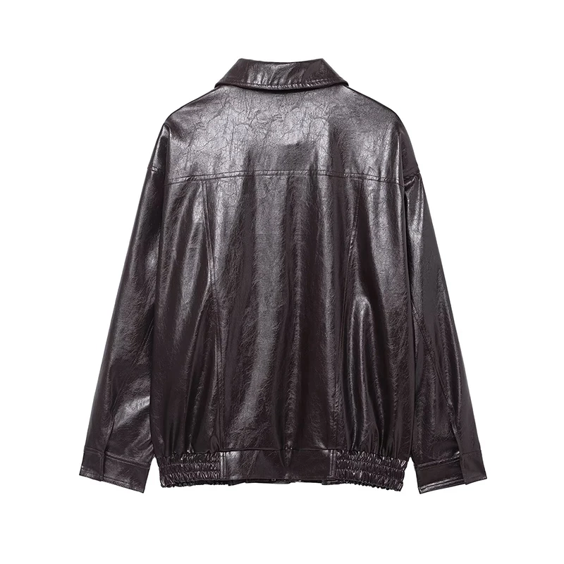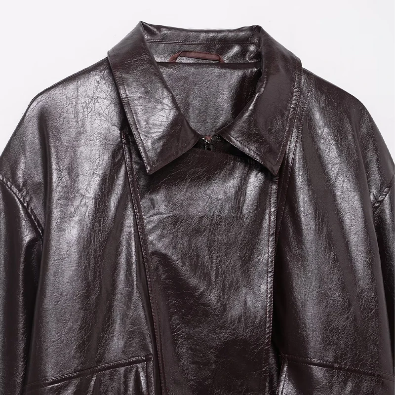 Willshela Women Fashion PU Coffee Front Zipper Jackets Vintage Lapel Neck Long Sleeves Female Chic Lady Coats Outfits