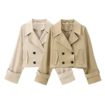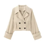 Willshela Women Fashion Solid Double Breasted Trench Jackets Vintage Lapel Neck Long Sleeves Female Chic Lady Outfits