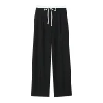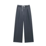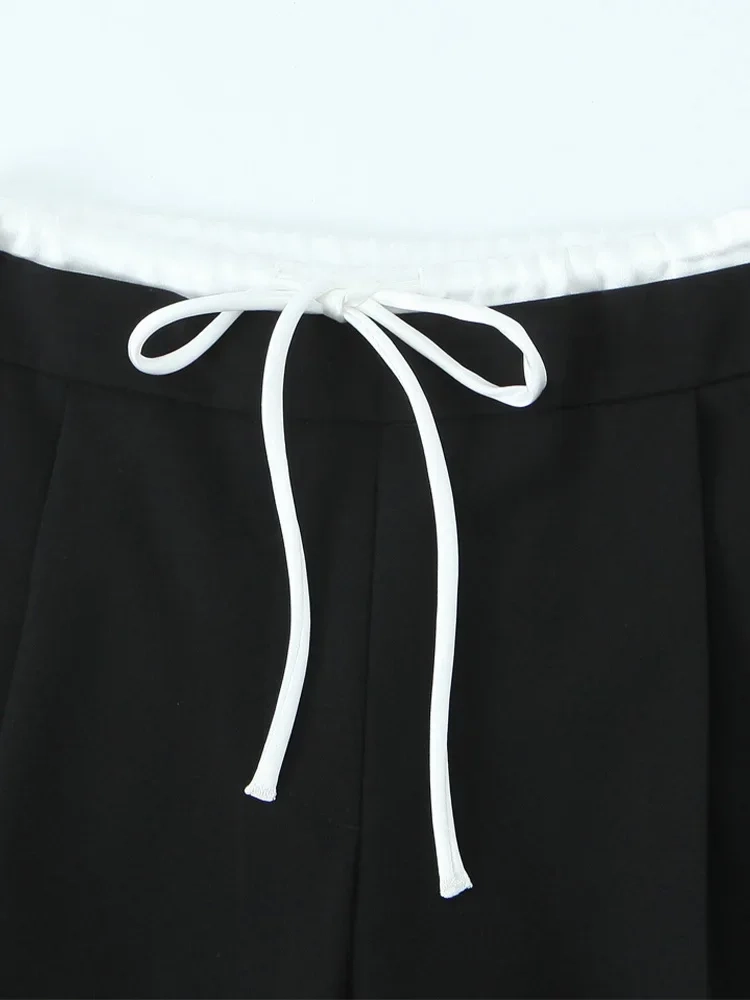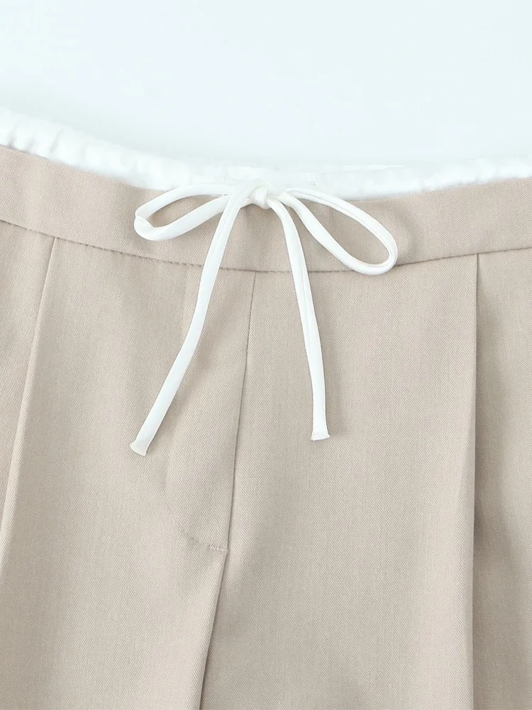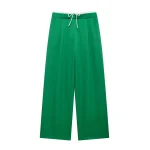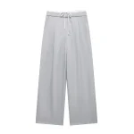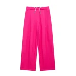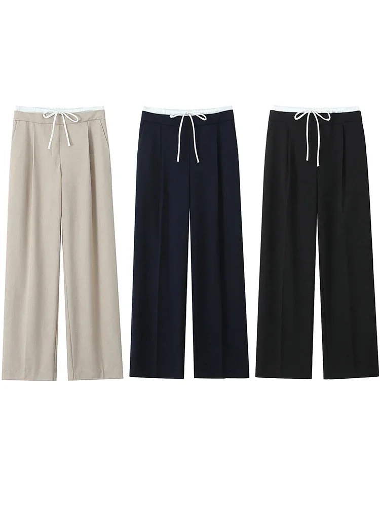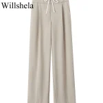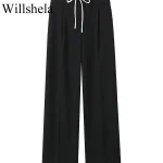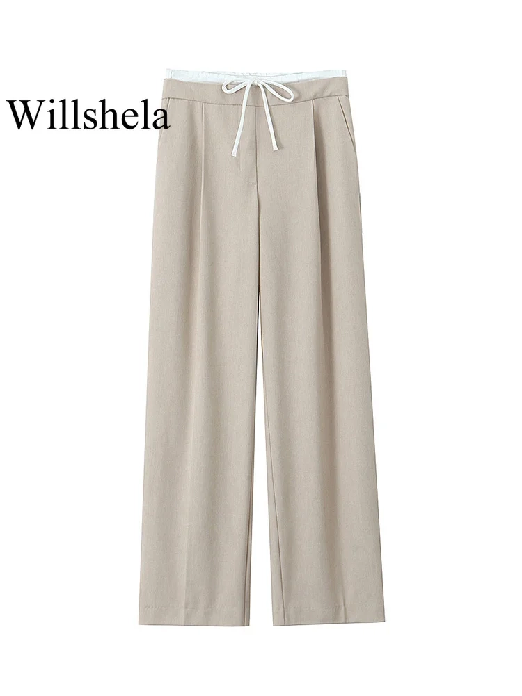 Willshela Women Fashion Solid Lace Up Side Zipper Straight Pants Vintage High Elastic Waist Female Chic Lady Trousers