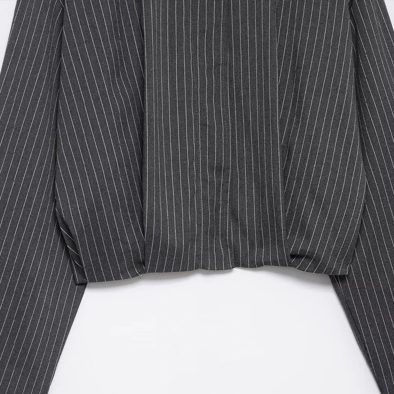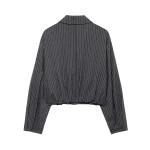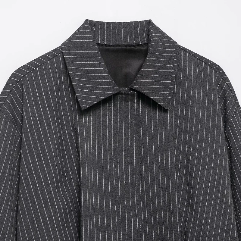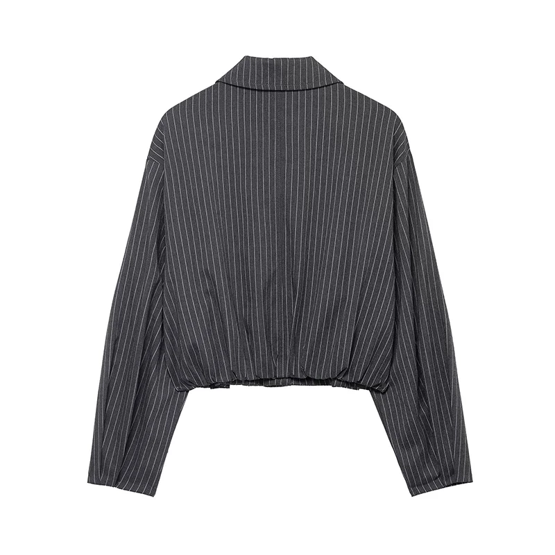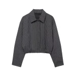 Willshela Women Fashion Striped Front Zipper Bomber Jackets Vintage Lapel Neck Long Sleeve Female Chic Lady Outfits