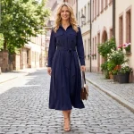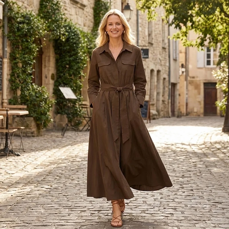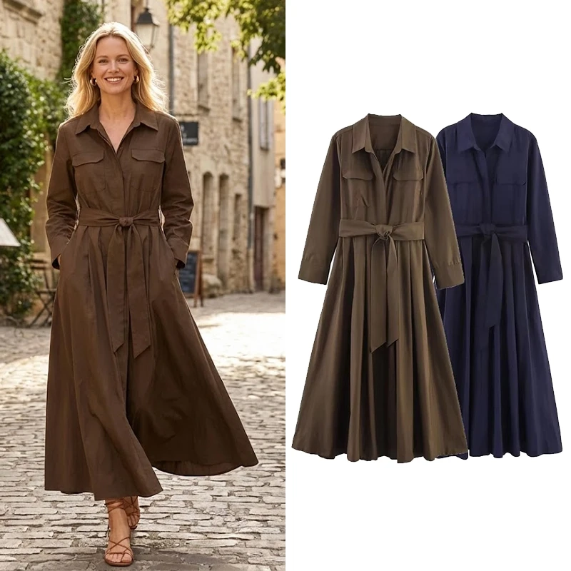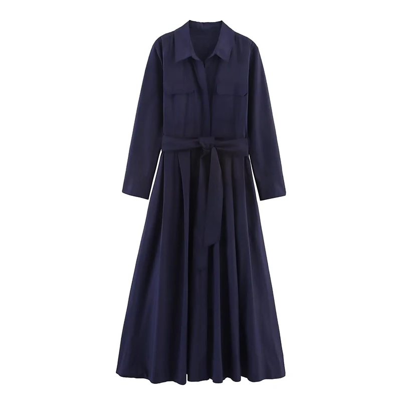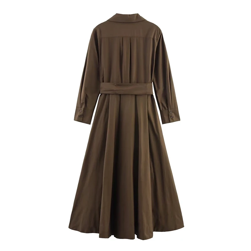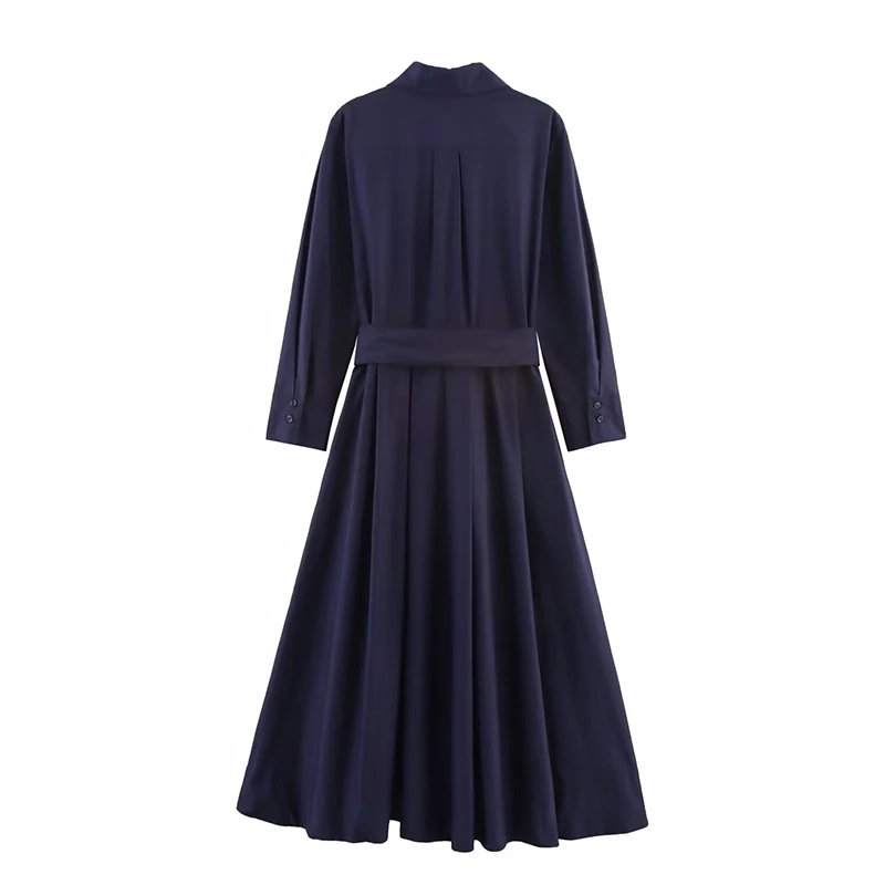 Willshela Women Fashion With Belt Solid Single Breasted Midi Dress Vintage Lapel Neck Long Sleeves Female Chic Lady Dresses