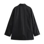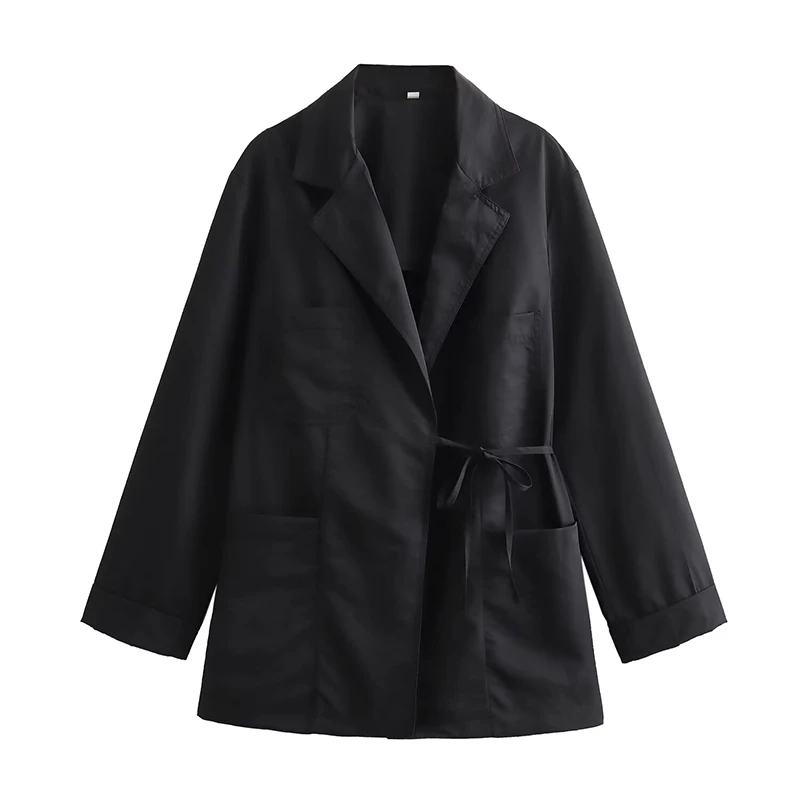 Willshela Women Fashion With Pockets Black Lace Up Jacket Vintage Lapel Neck Long Sleeves Female Chic Lady Outfits