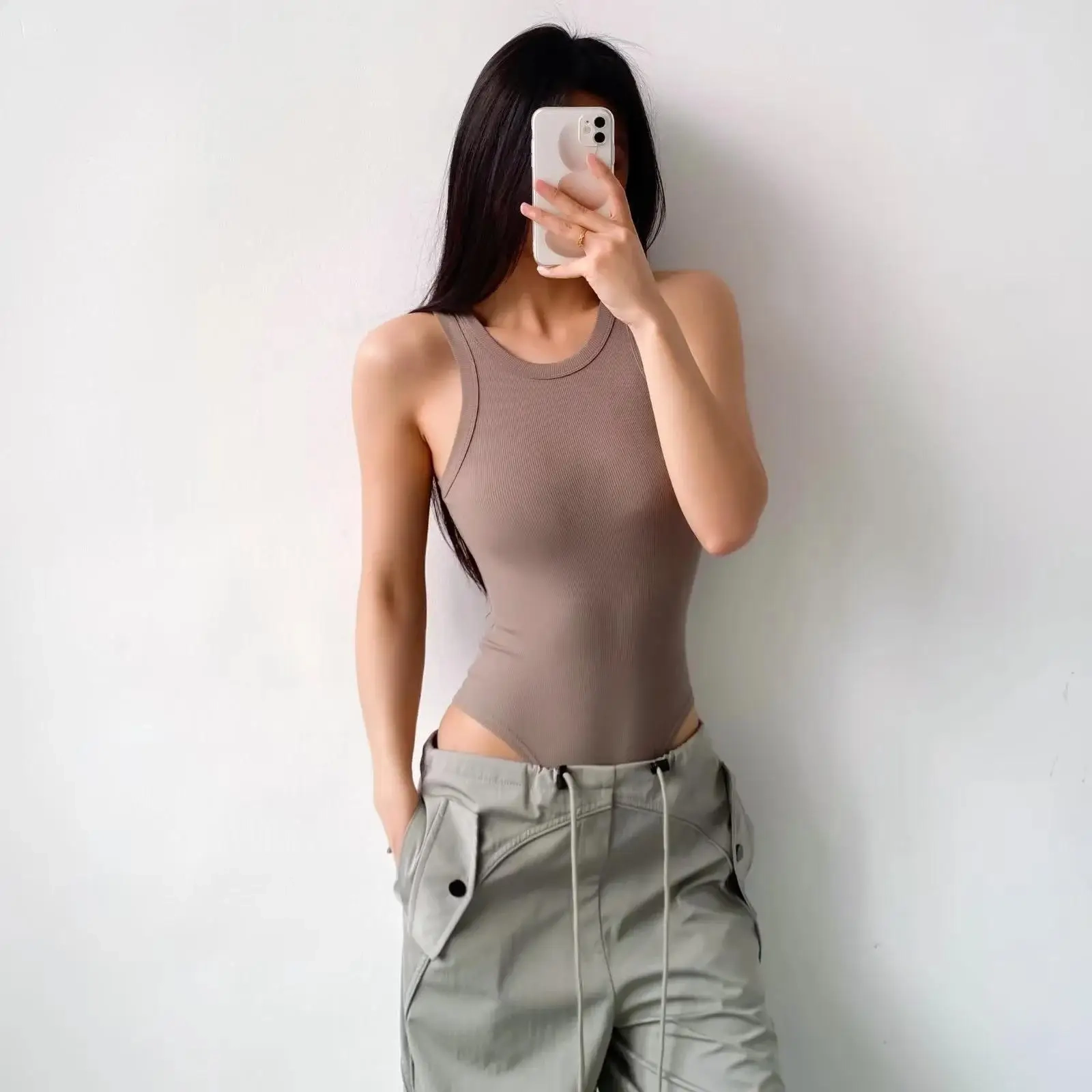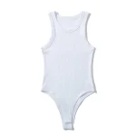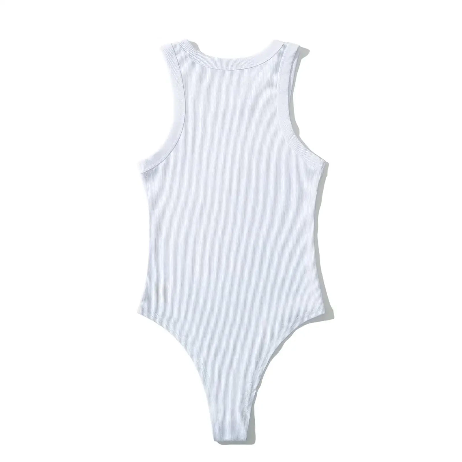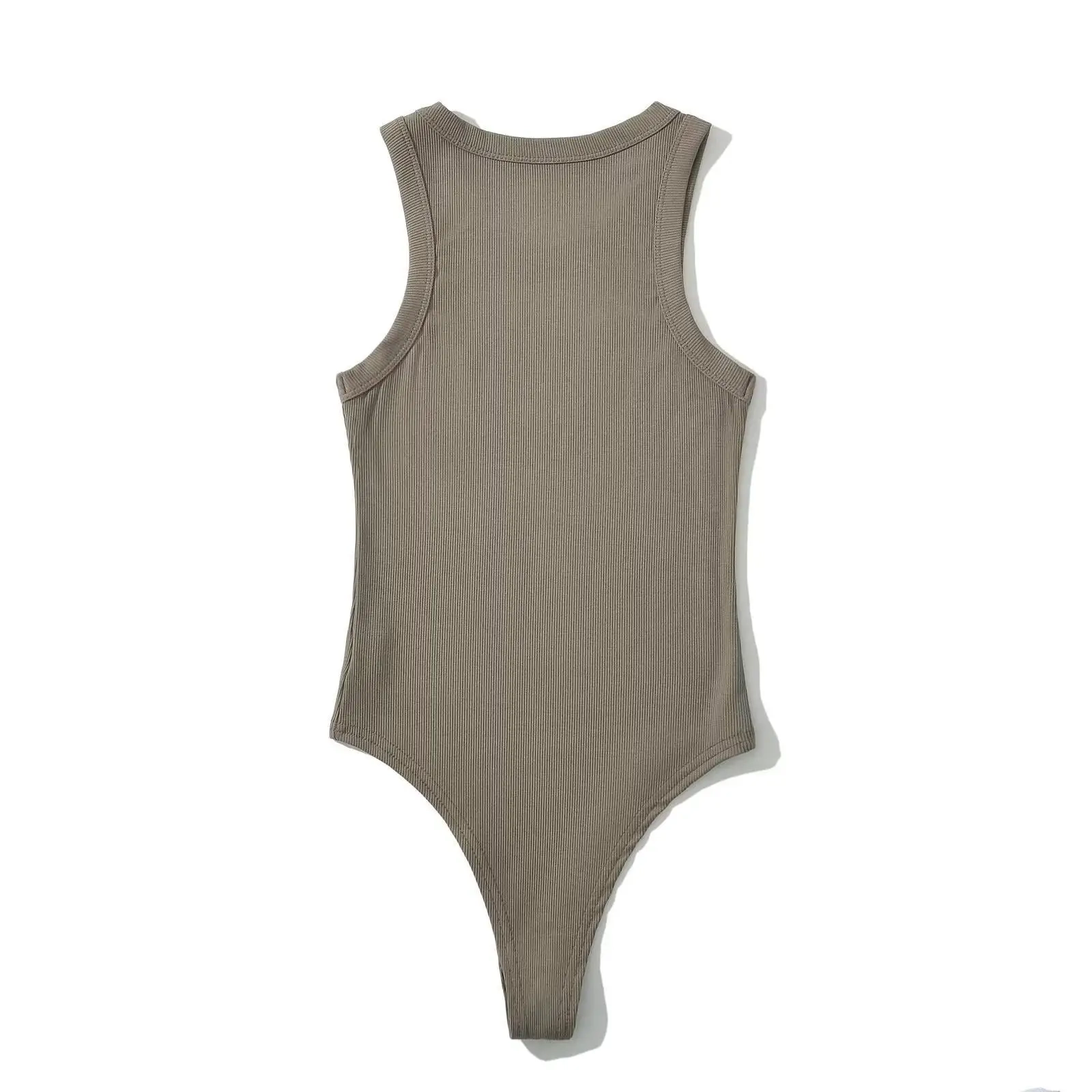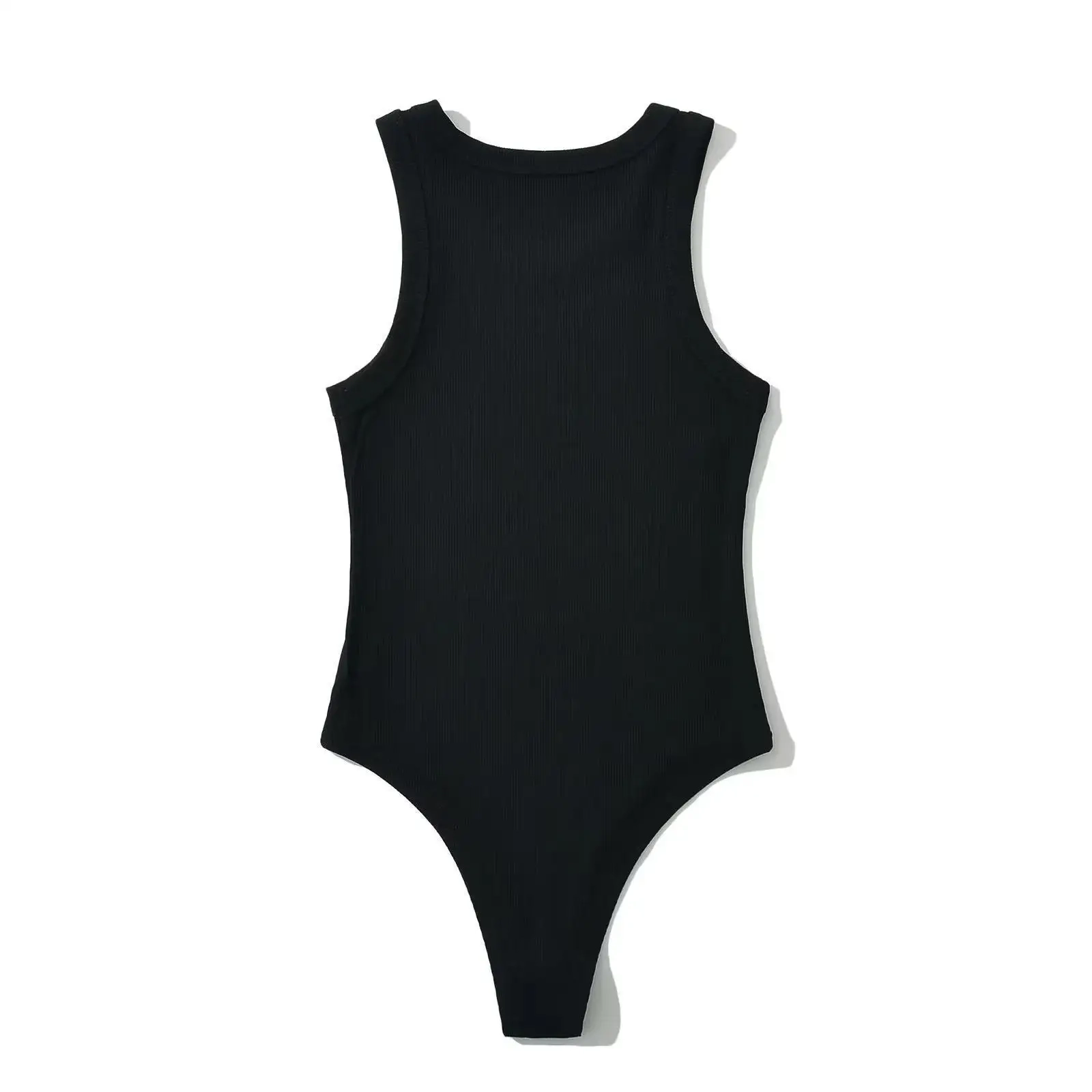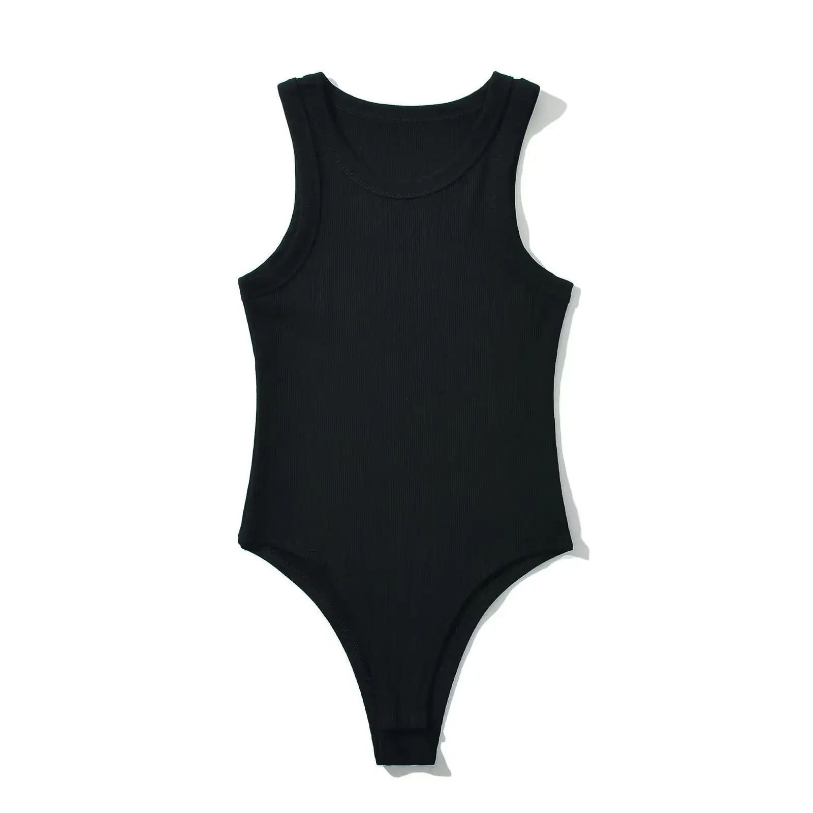 Women Rib Knit Sleeveless Bodysuits Summer Solid Color Elastic Slim Top Jumpsutis