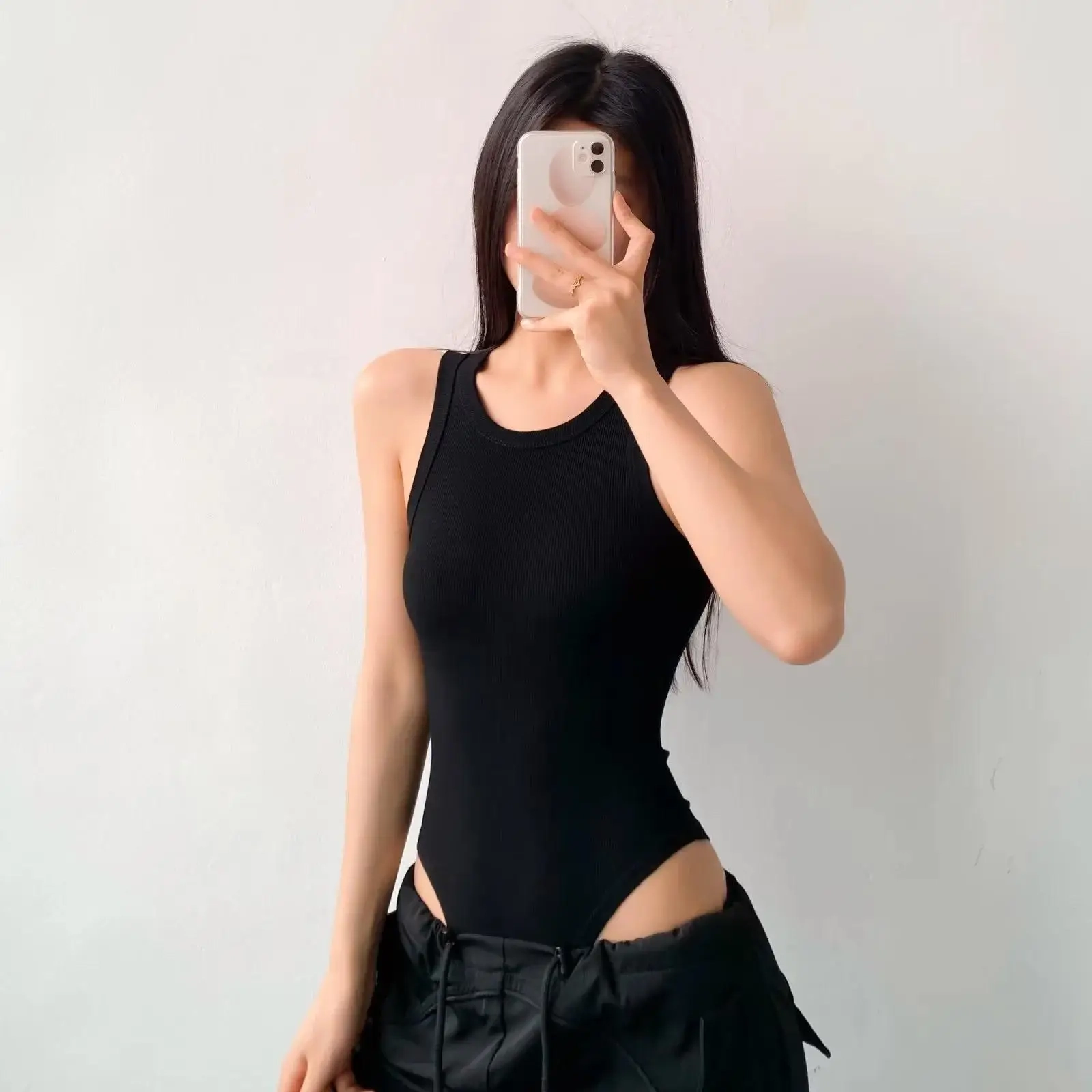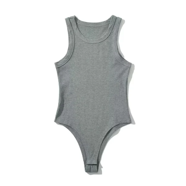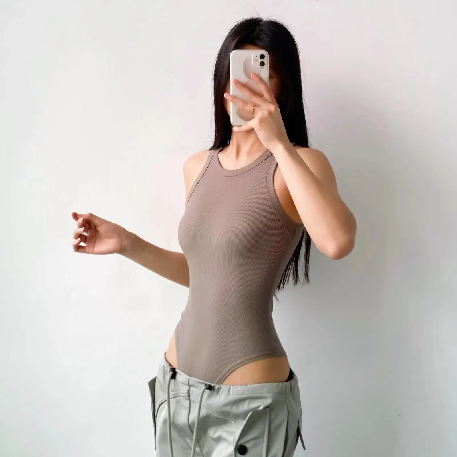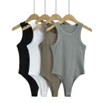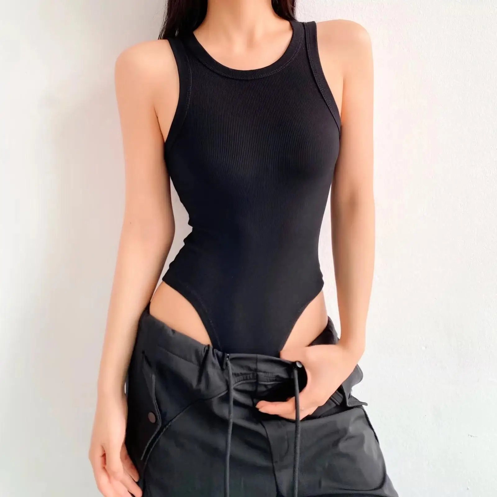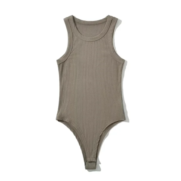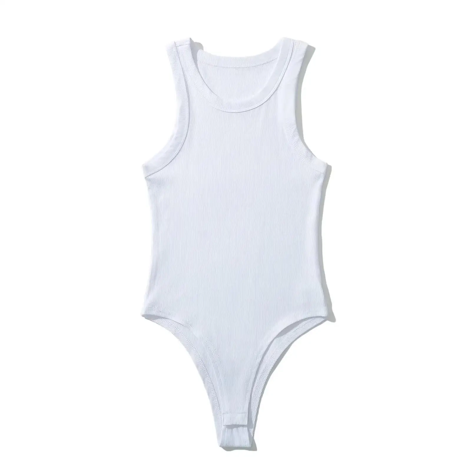 Women Rib Knit Sleeveless Bodysuits Summer Solid Color Elastic Slim Top Jumpsutis