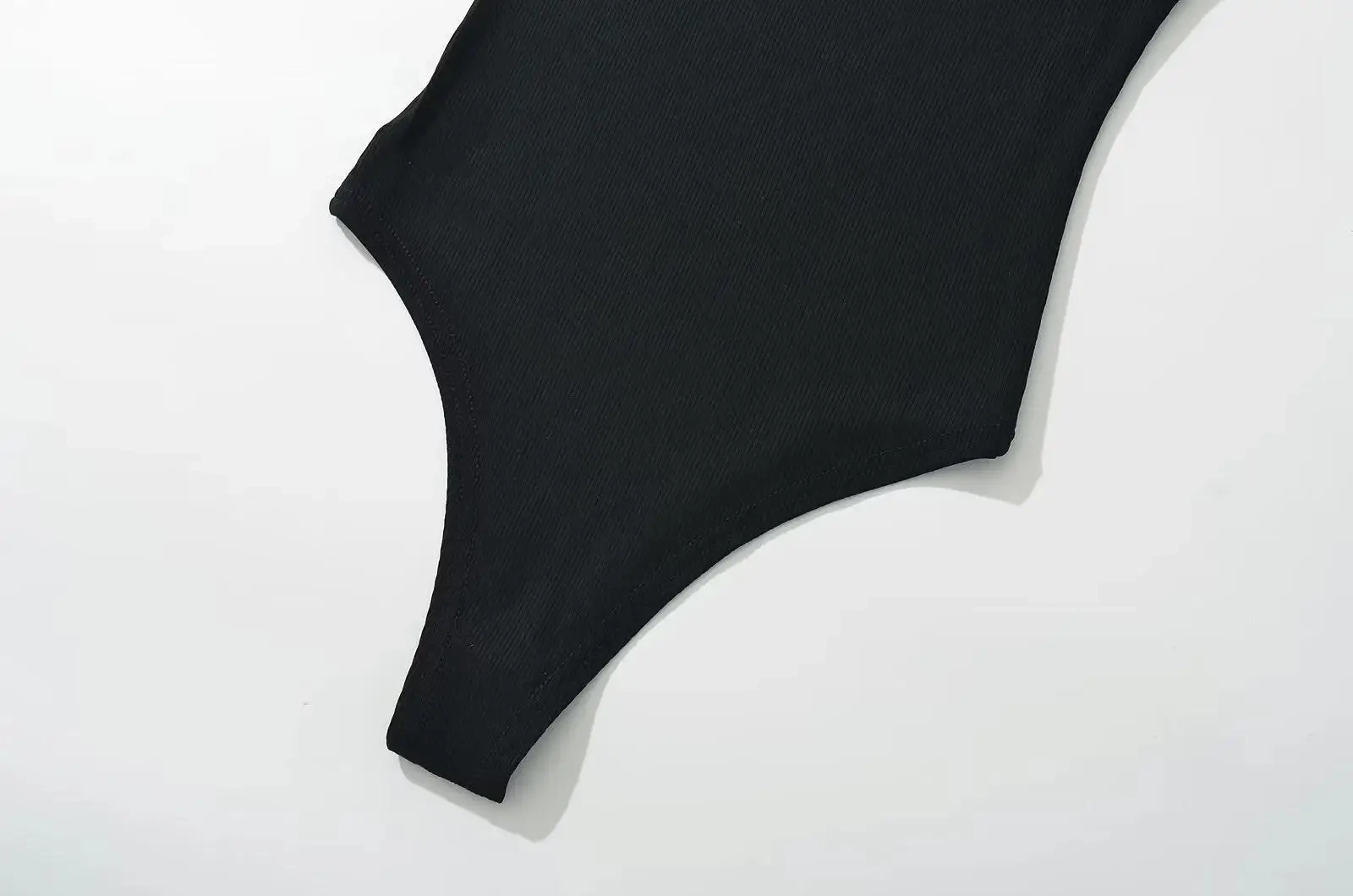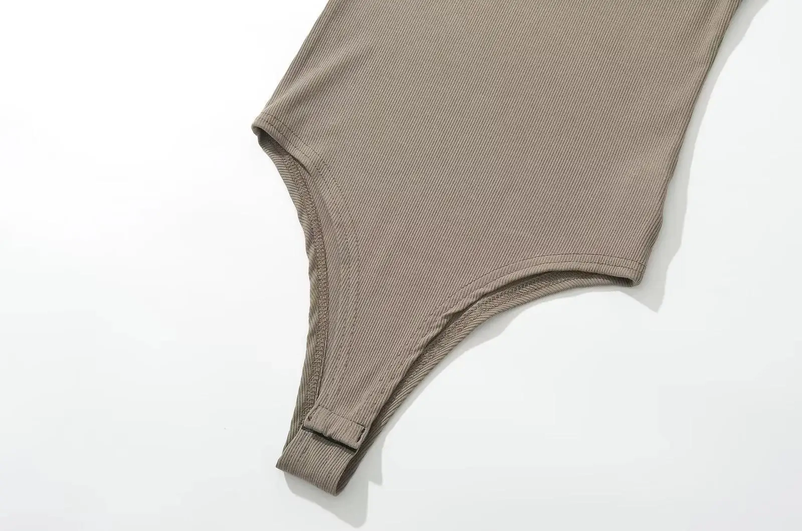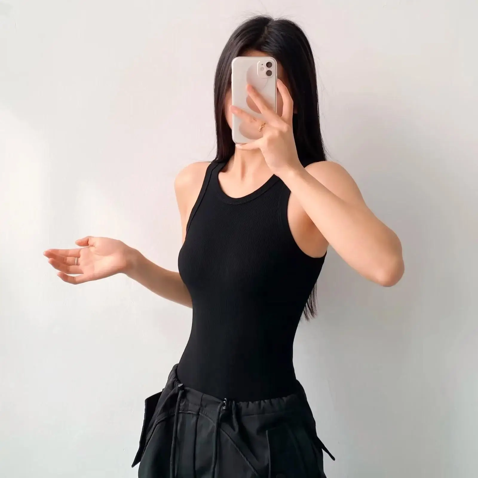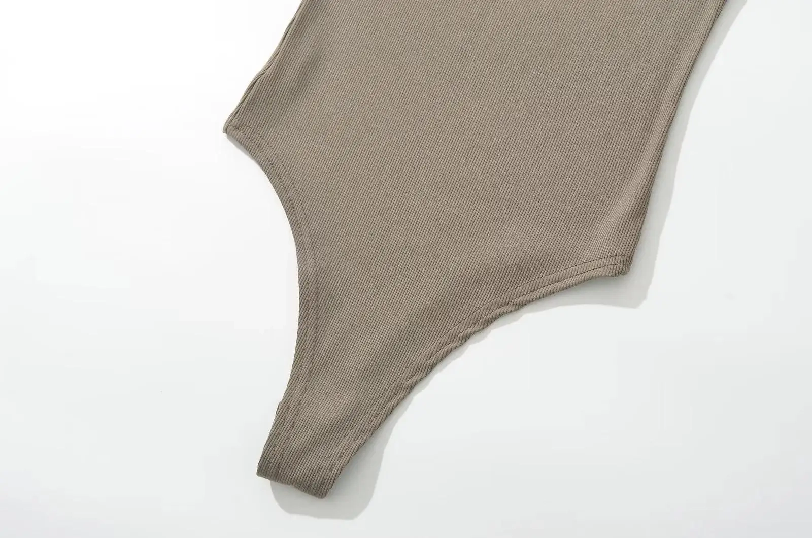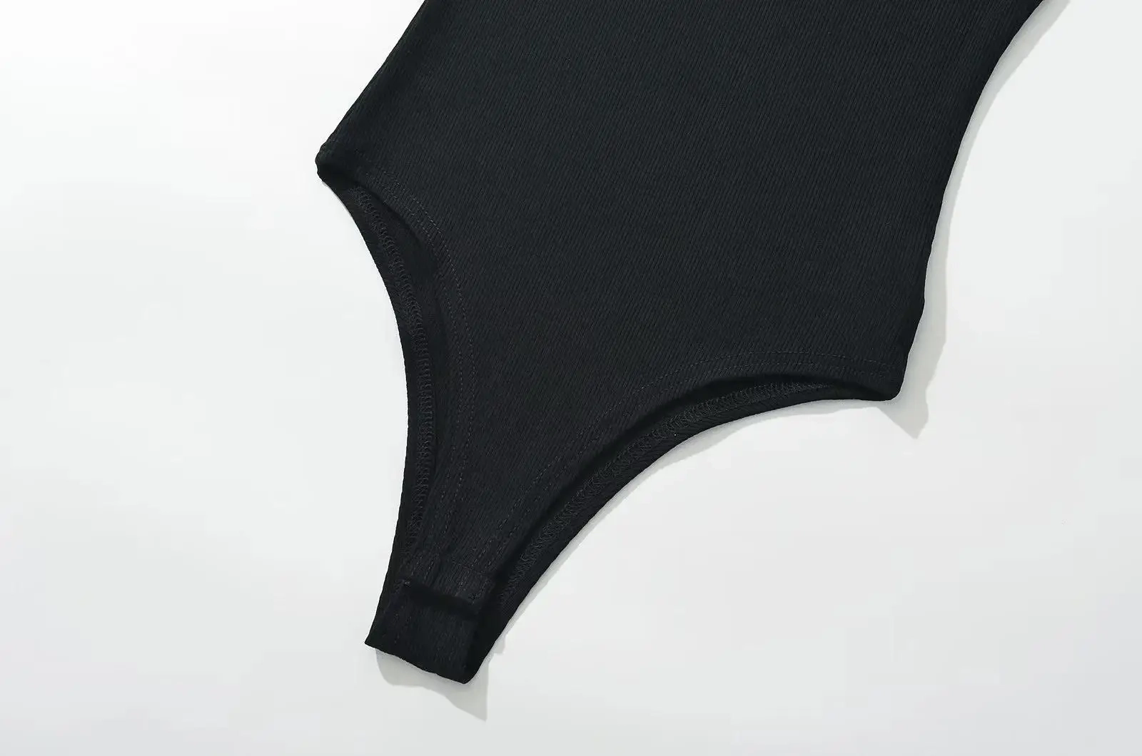 Women Rib Knit Sleeveless Bodysuits Summer Solid Color Elastic Slim Top Jumpsutis