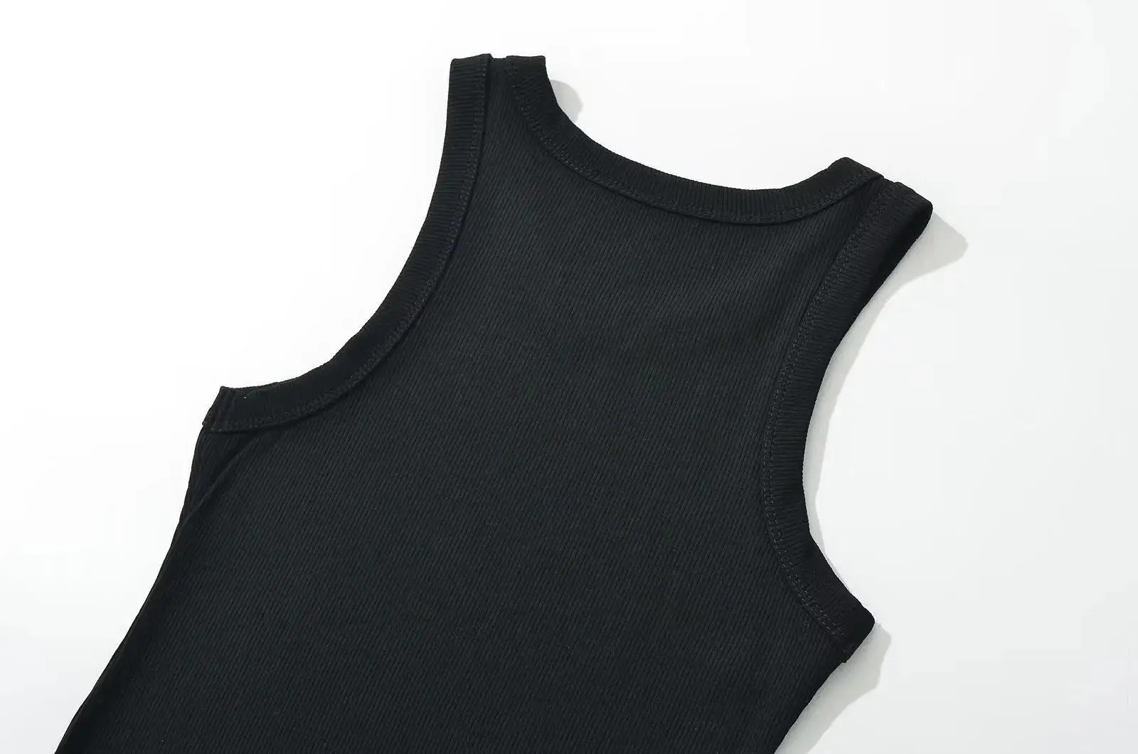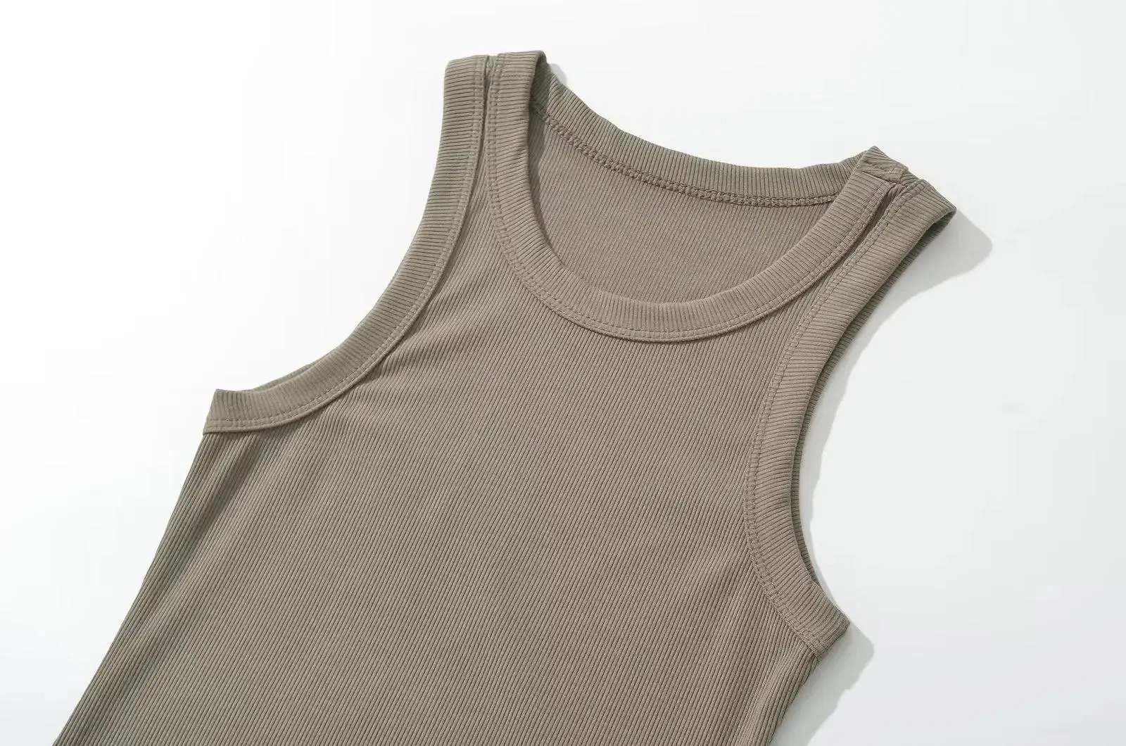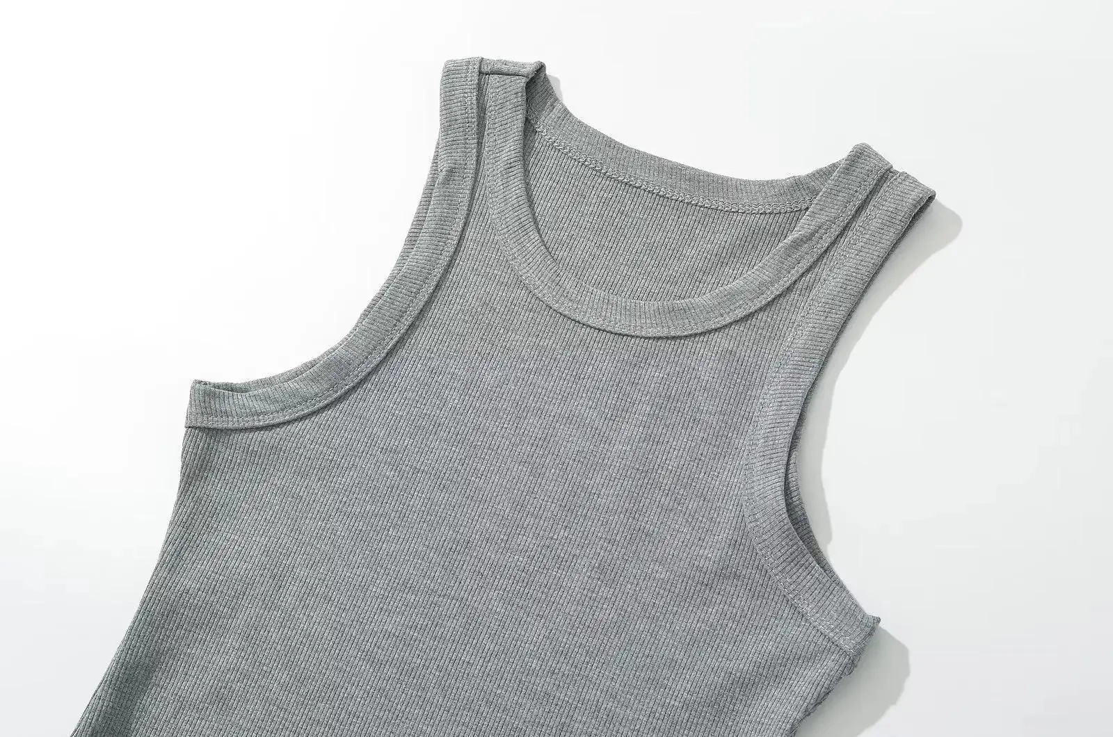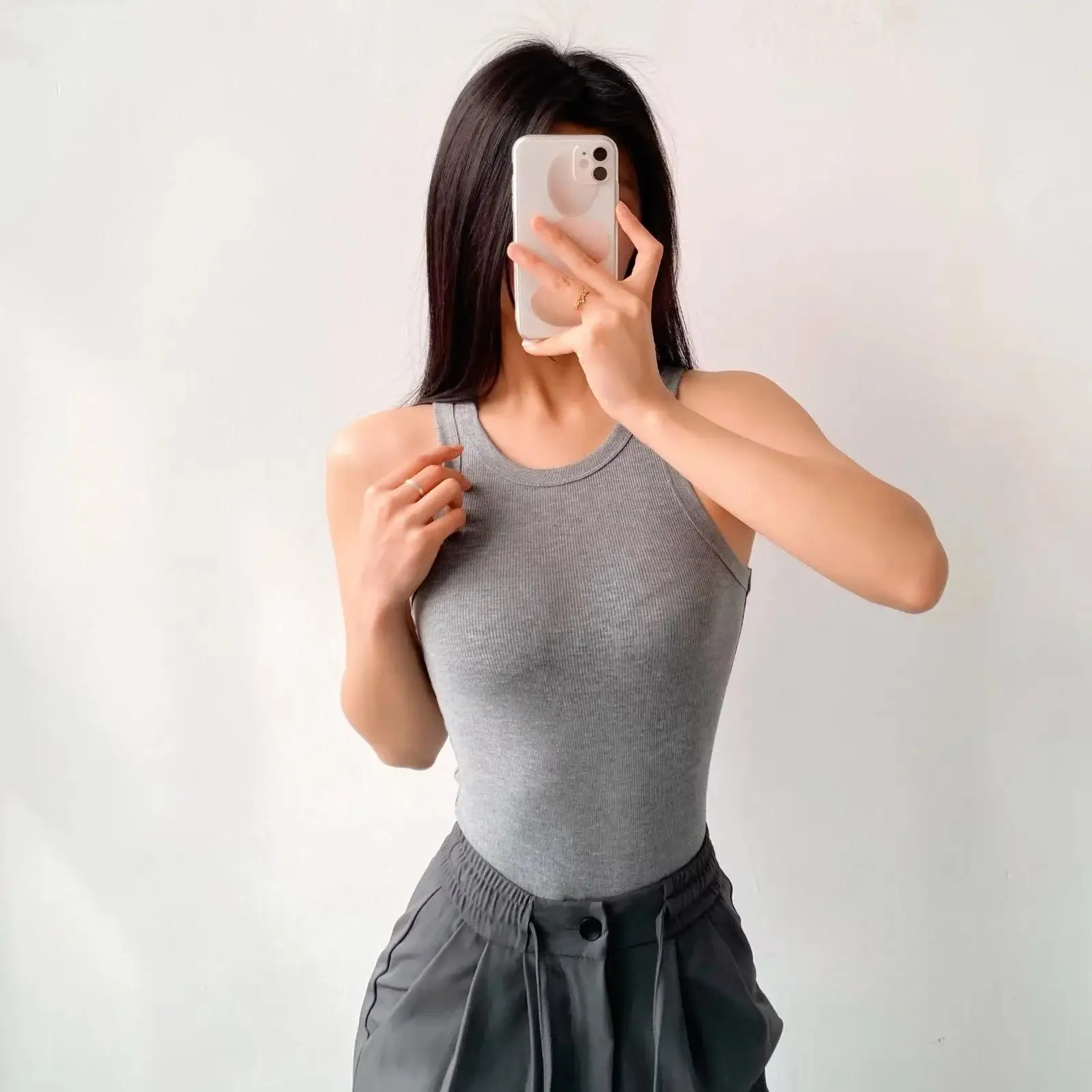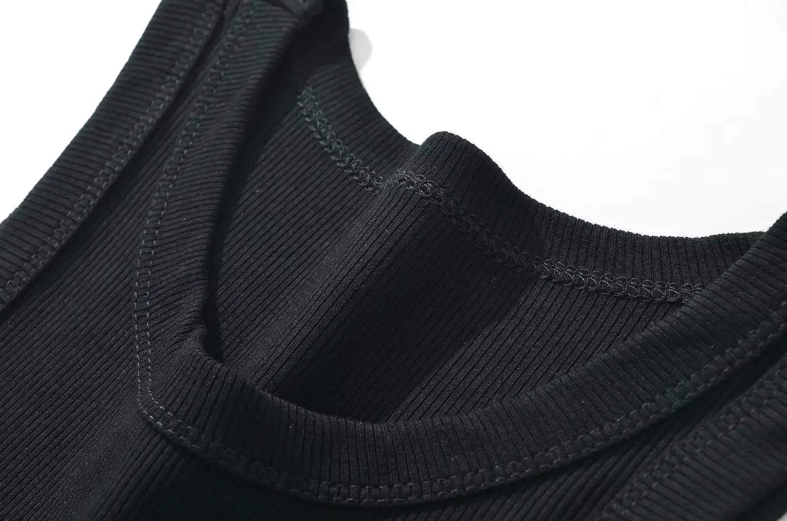 Women Rib Knit Sleeveless Bodysuits Summer Solid Color Elastic Slim Top Jumpsutis