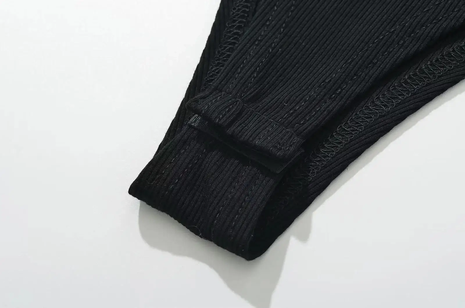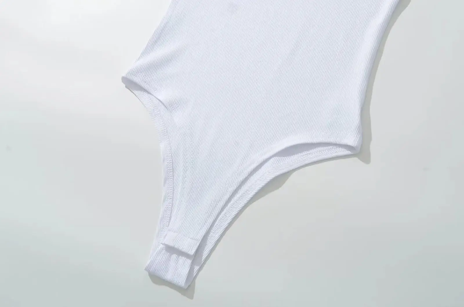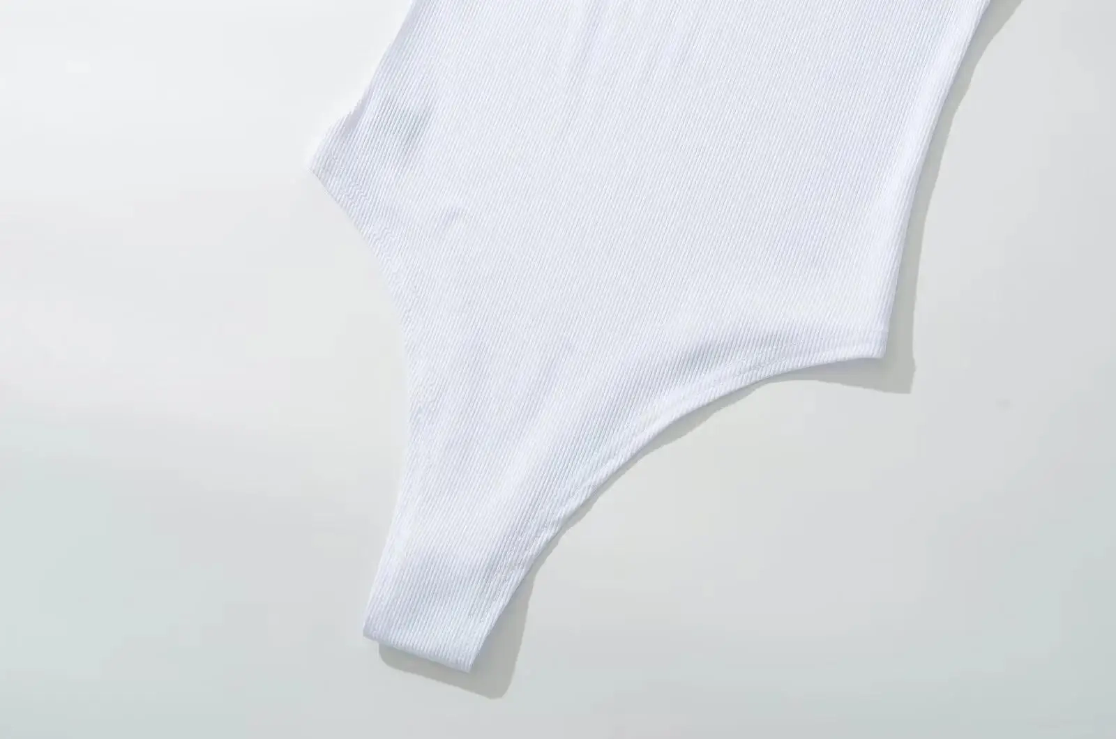 Summer Short Sleeve V-neck Rib Knitted Bodysuits Women Elastic Slim Black White Top Jumpsuits