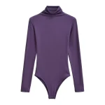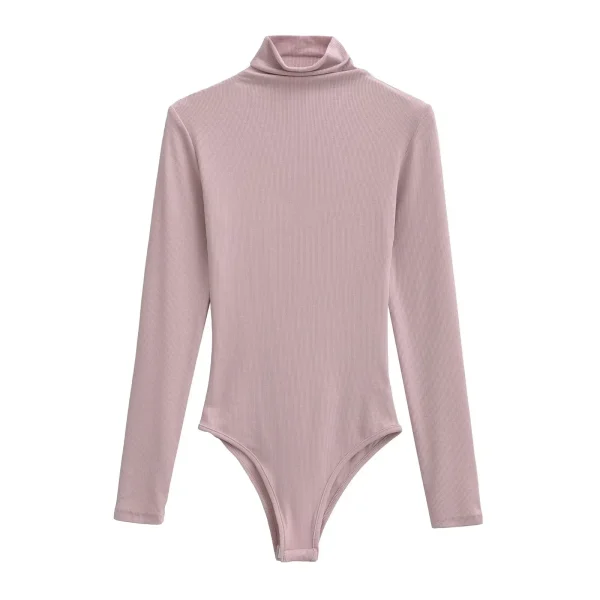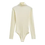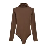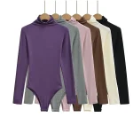 Women Turtleneck Knitted Stretchy Slim Lyocell Bodysuits 6 Colors Long Sleeve Tops Jumpsuits