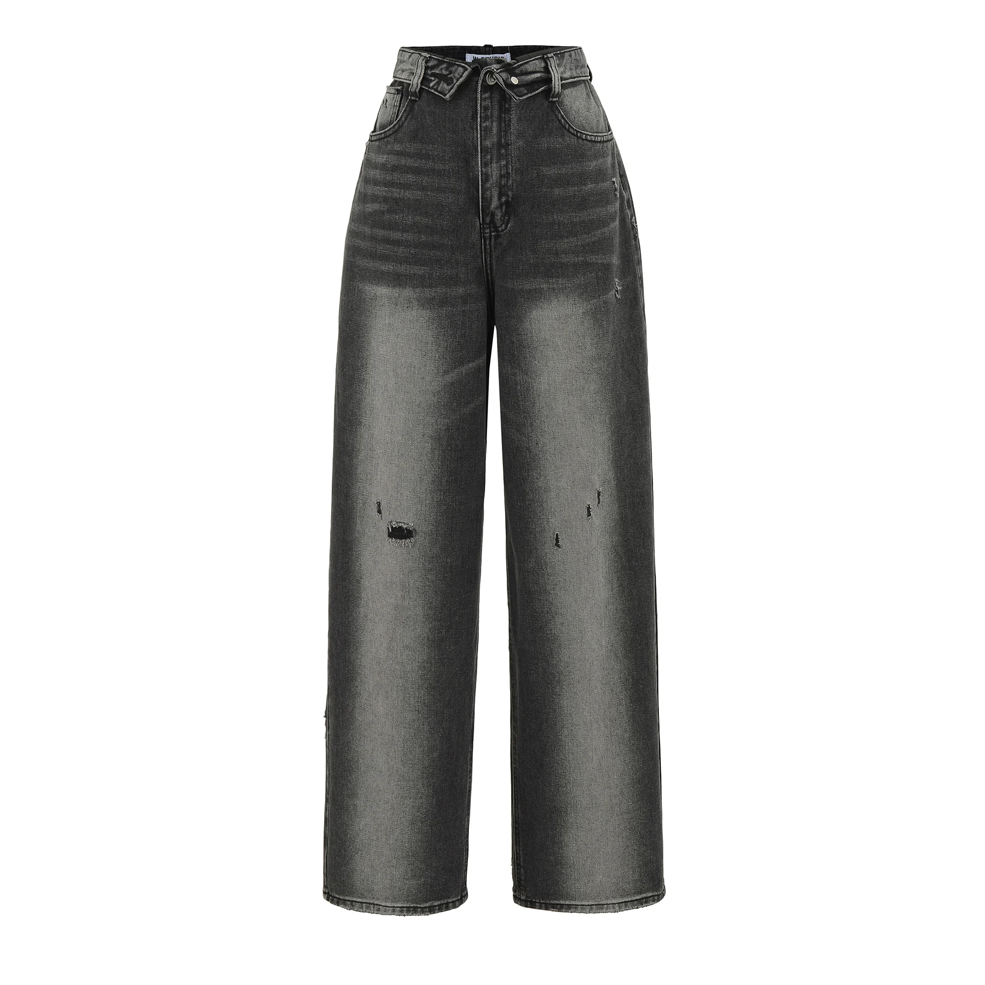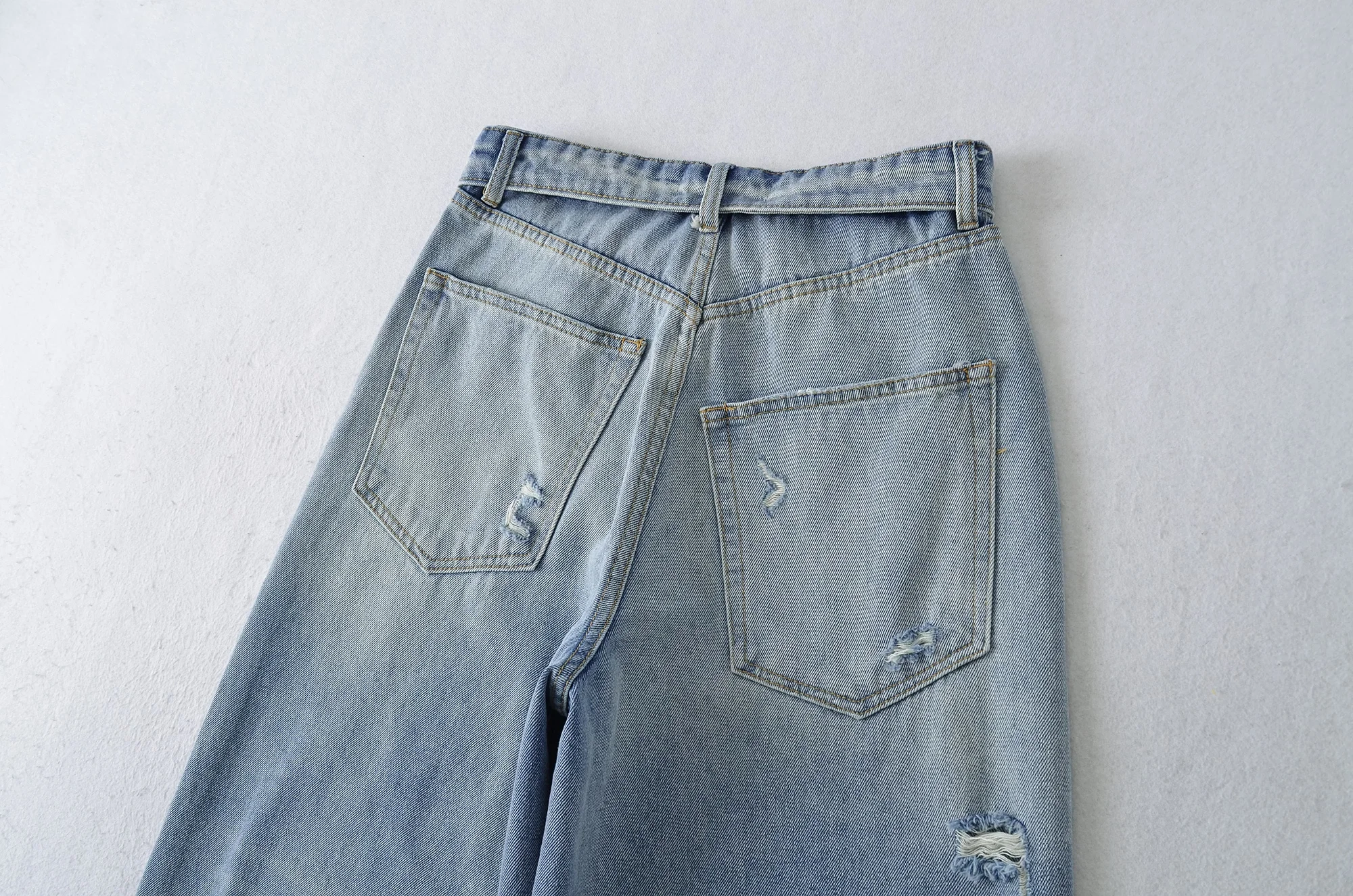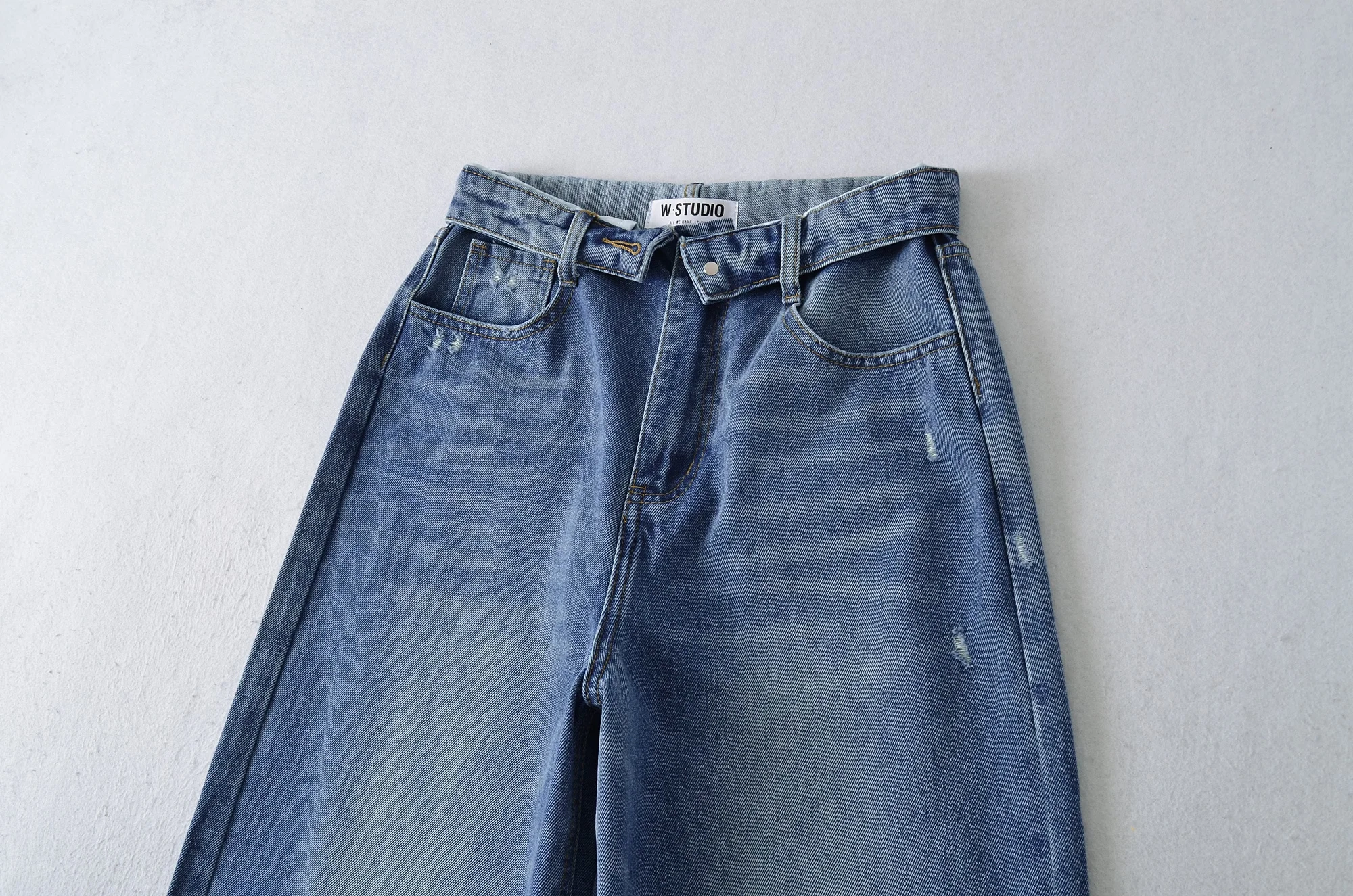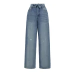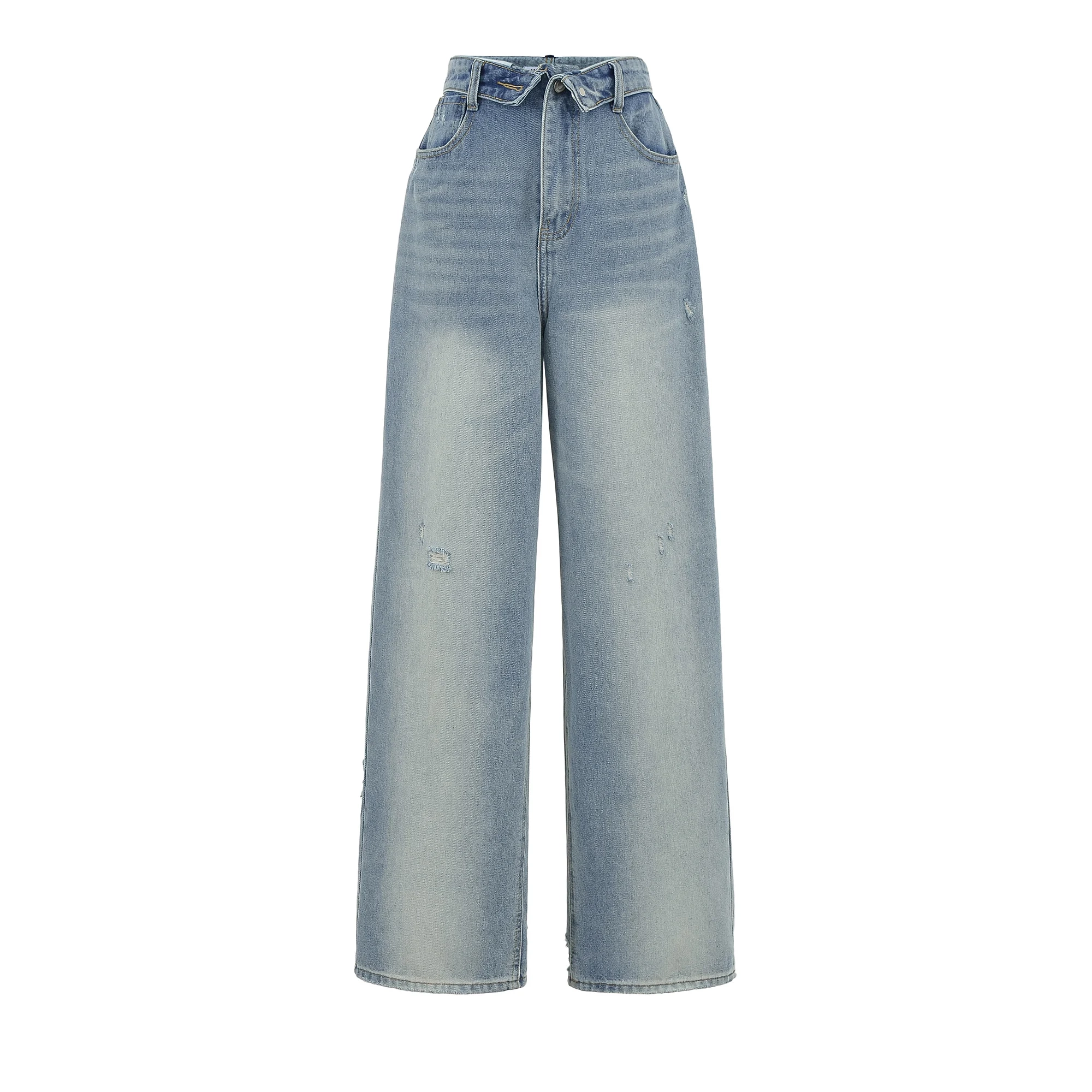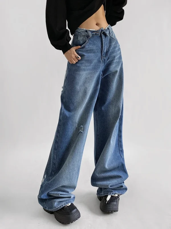 Women’s High-Waisted Flared Wide-Leg Denim Pants Long Jeans Hole Design & Back Pockets, 3 Colors