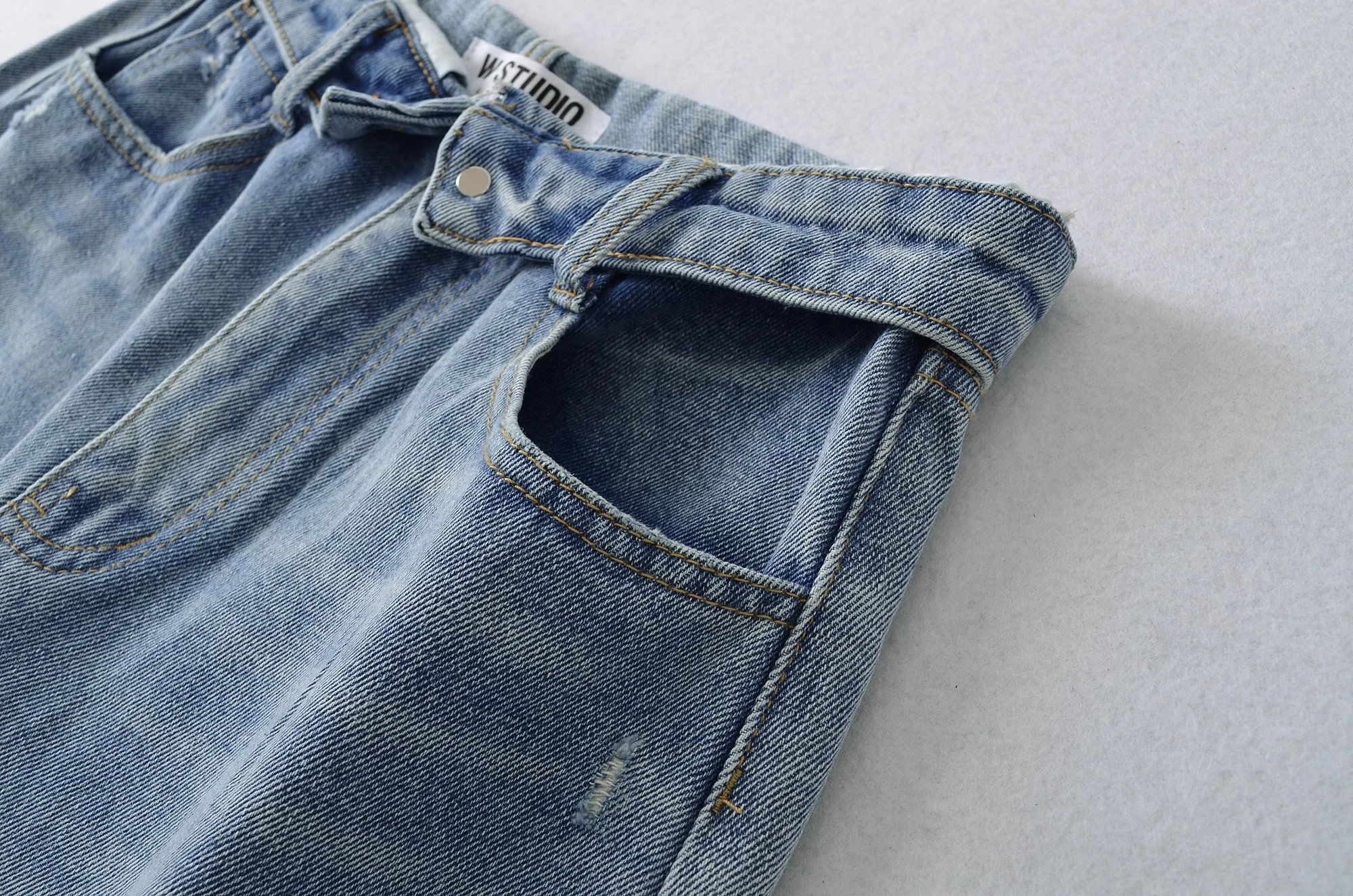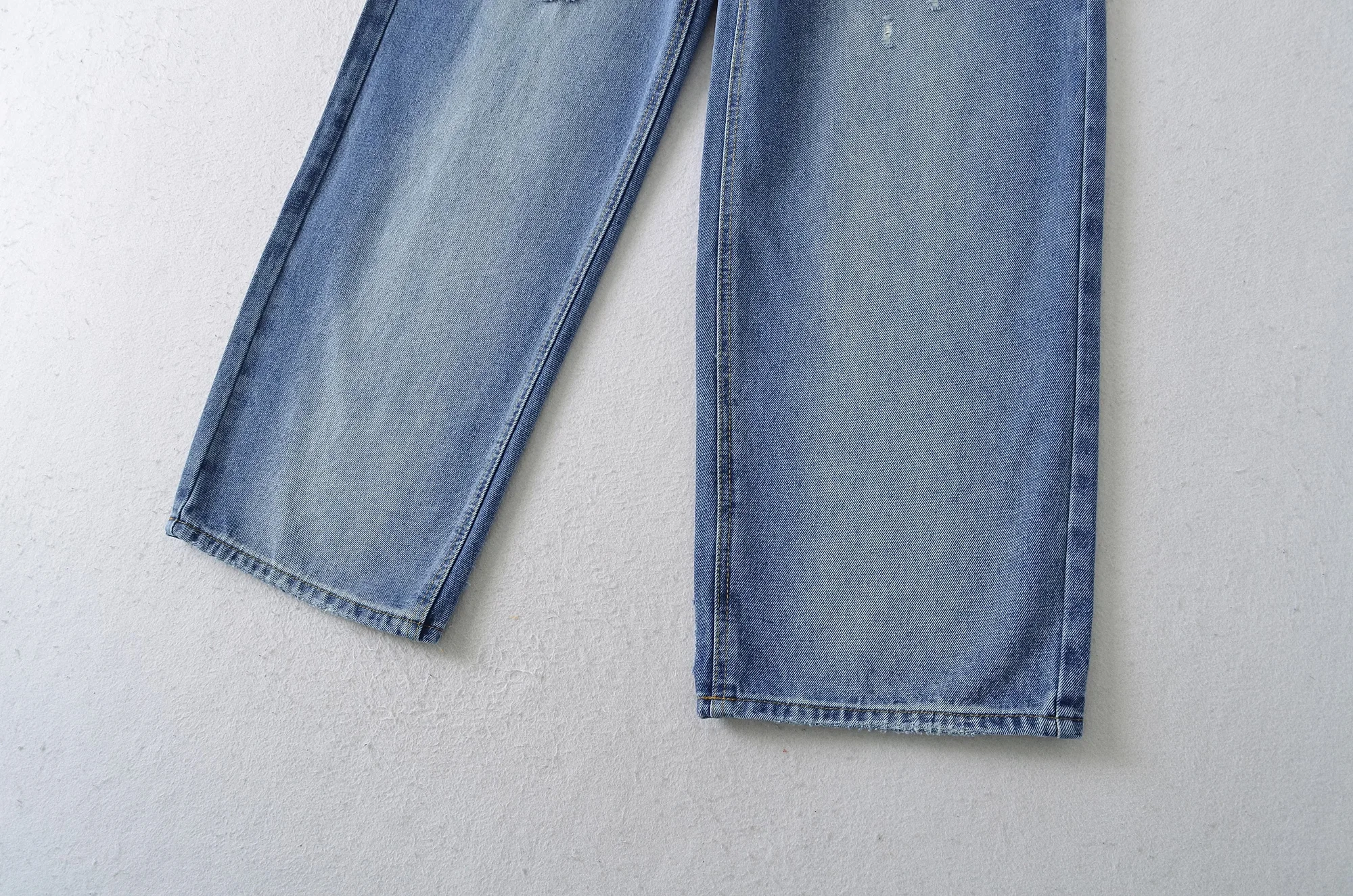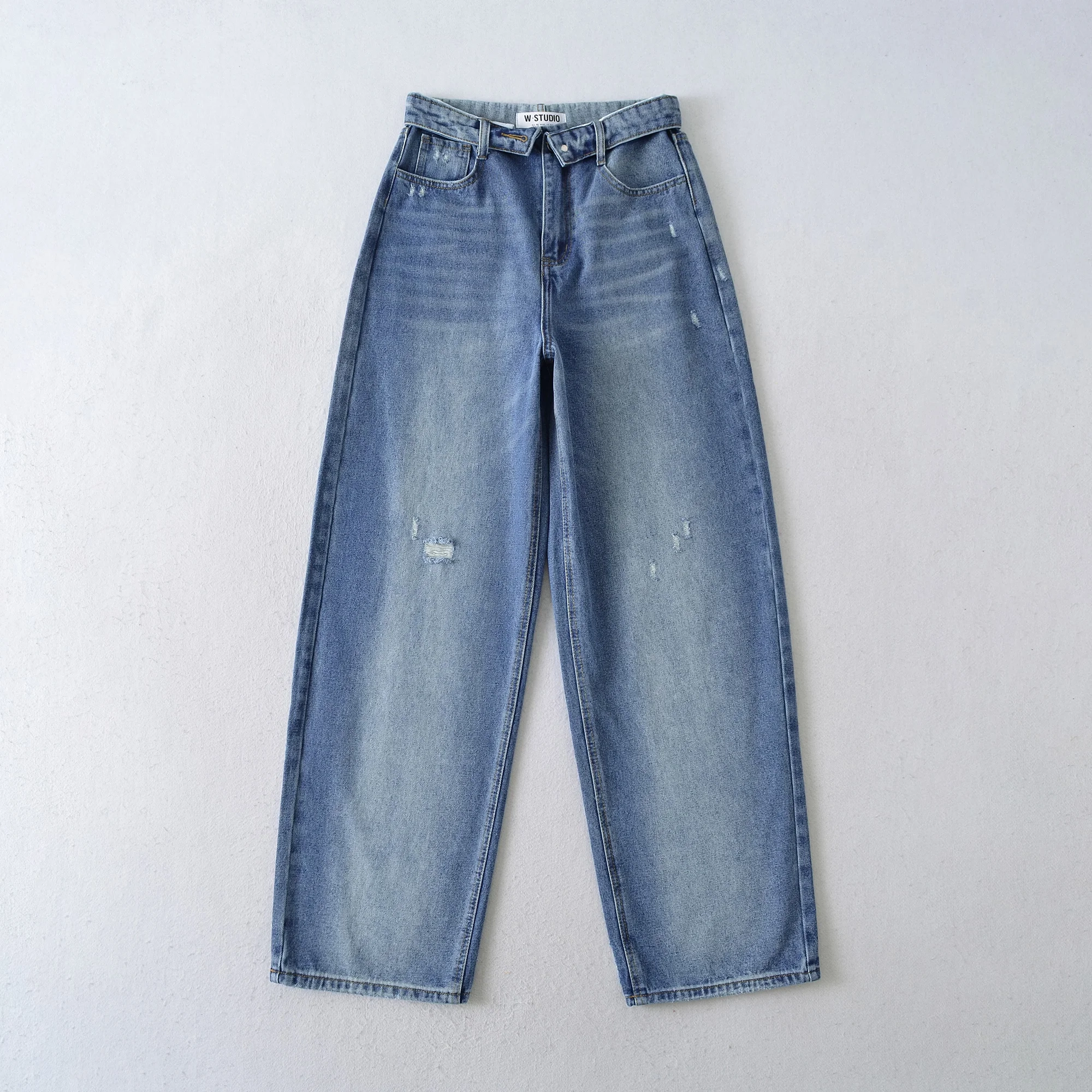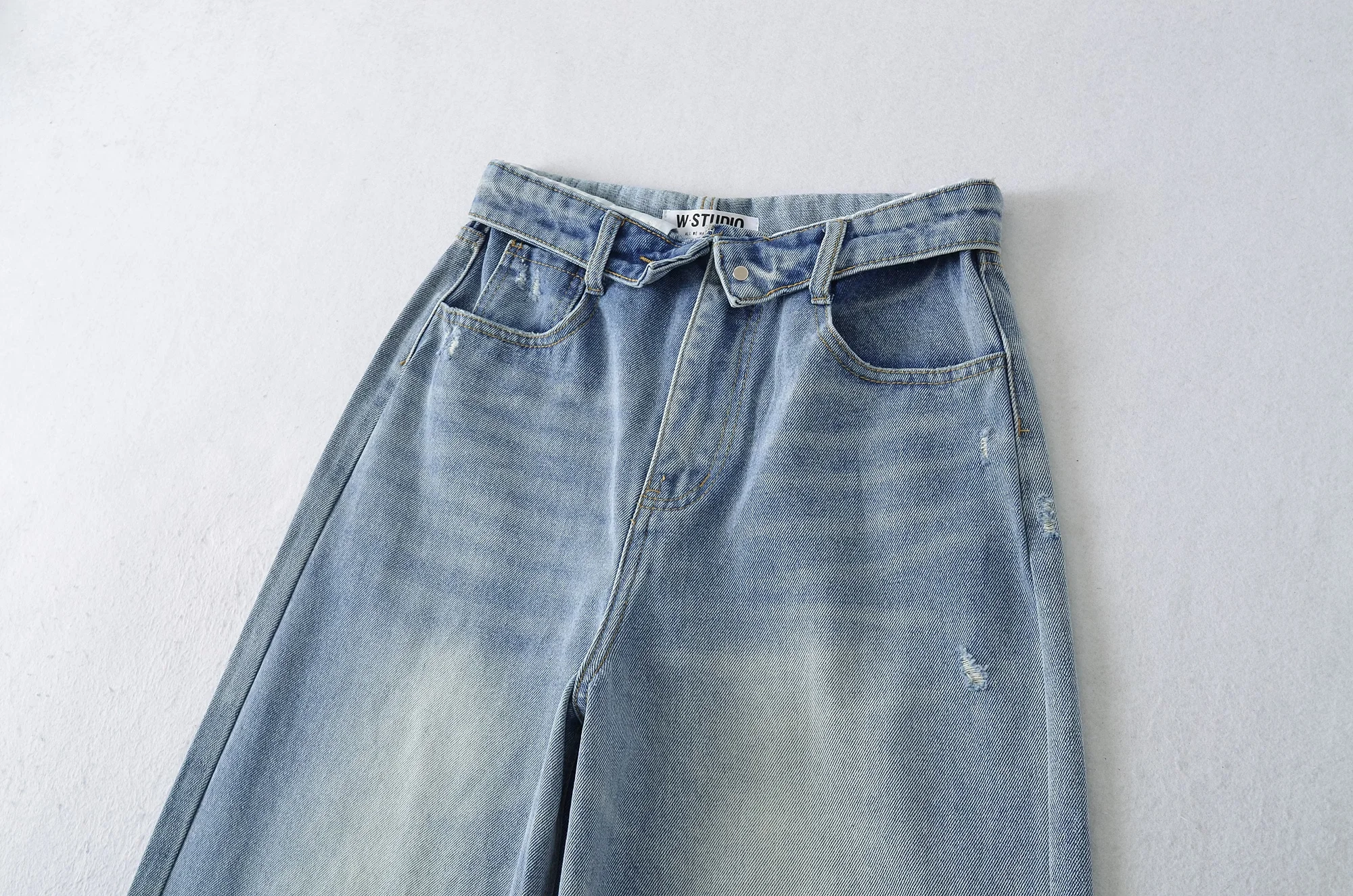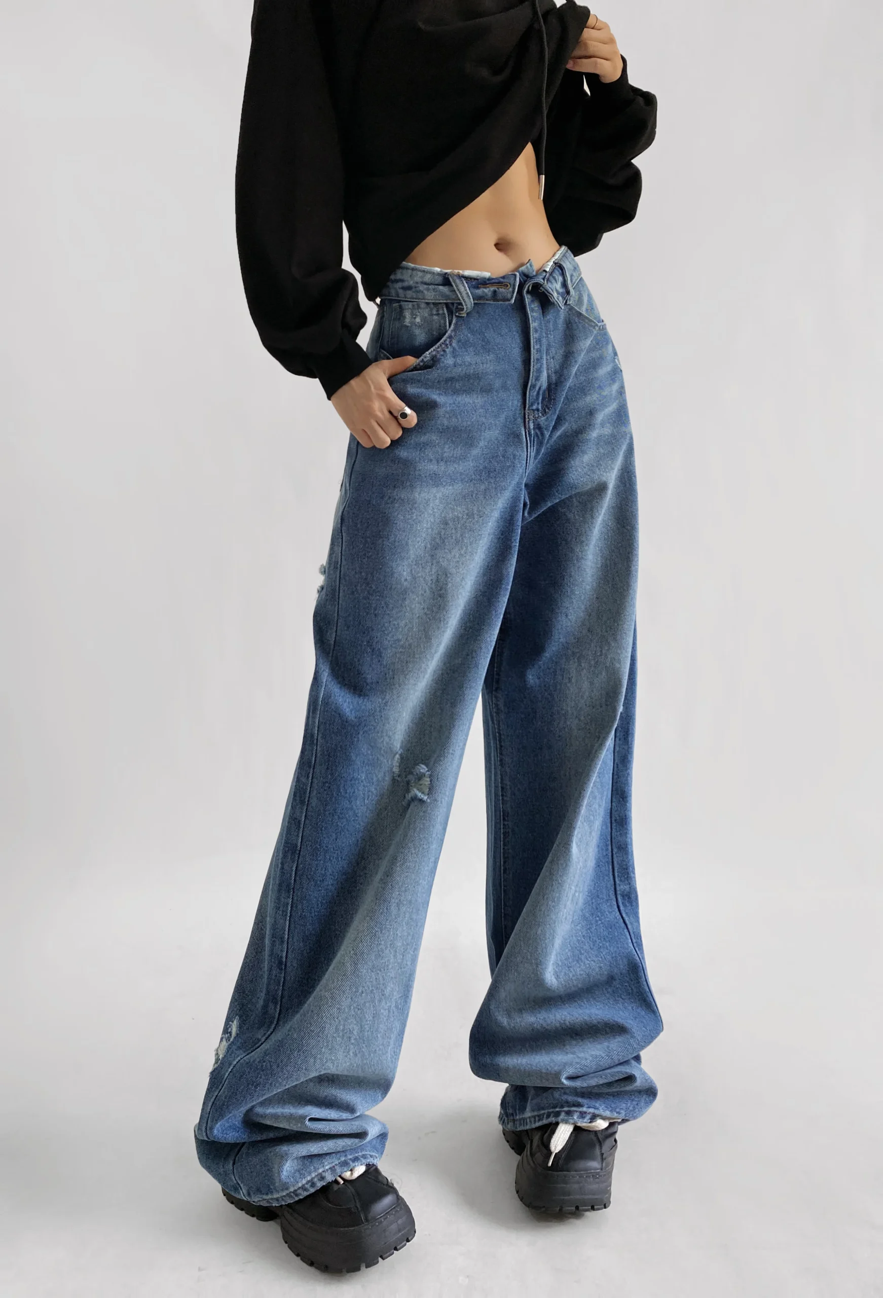 Women’s High-Waisted Flared Wide-Leg Denim Pants Long Jeans Hole Design & Back Pockets, 3 Colors