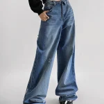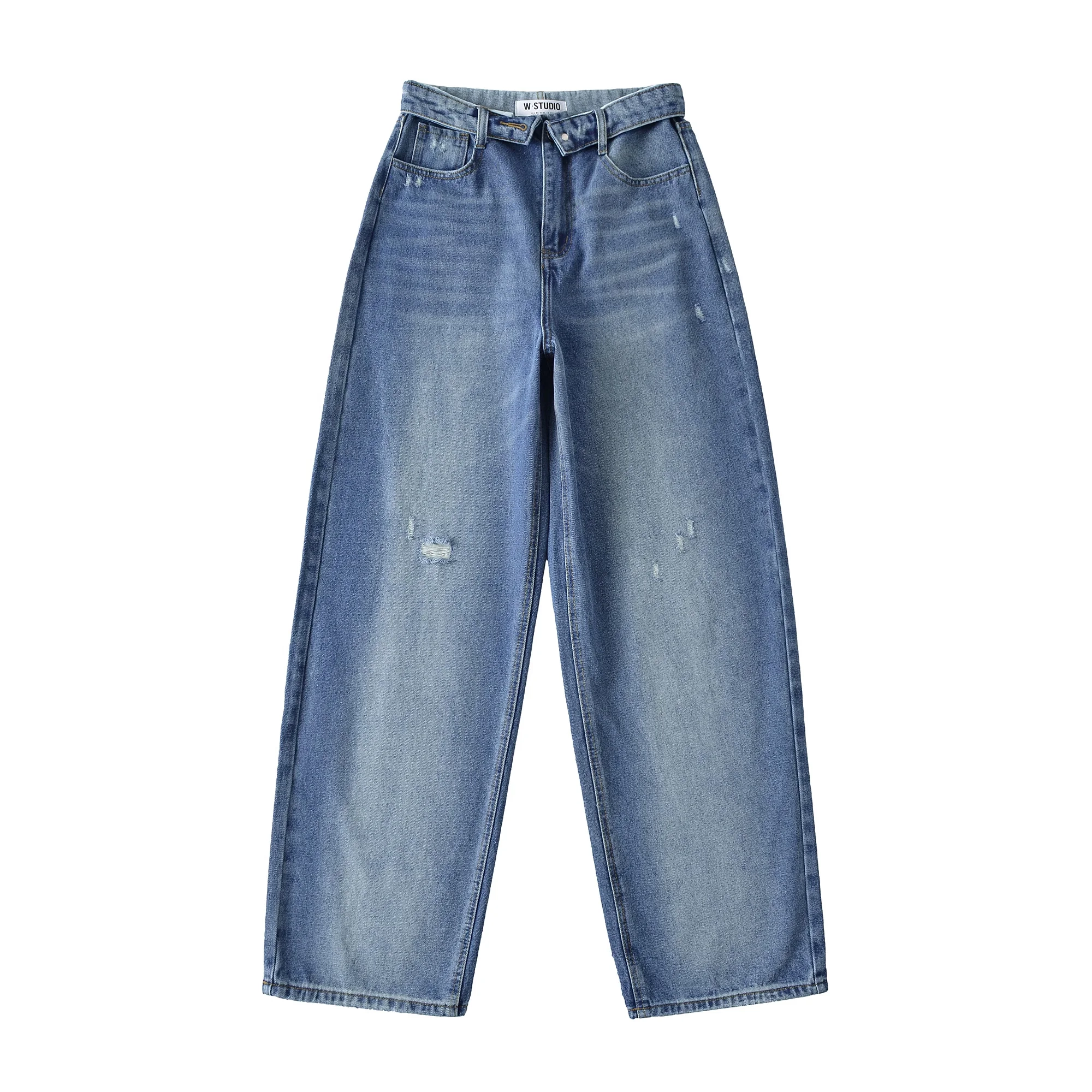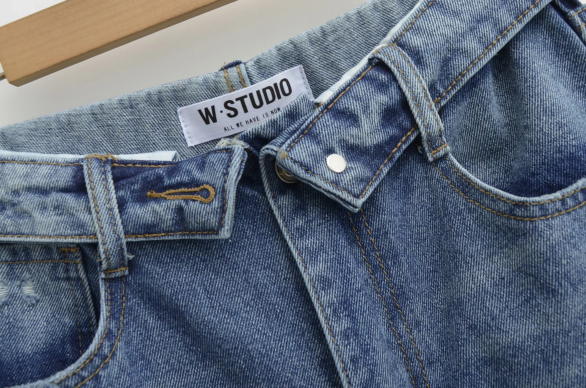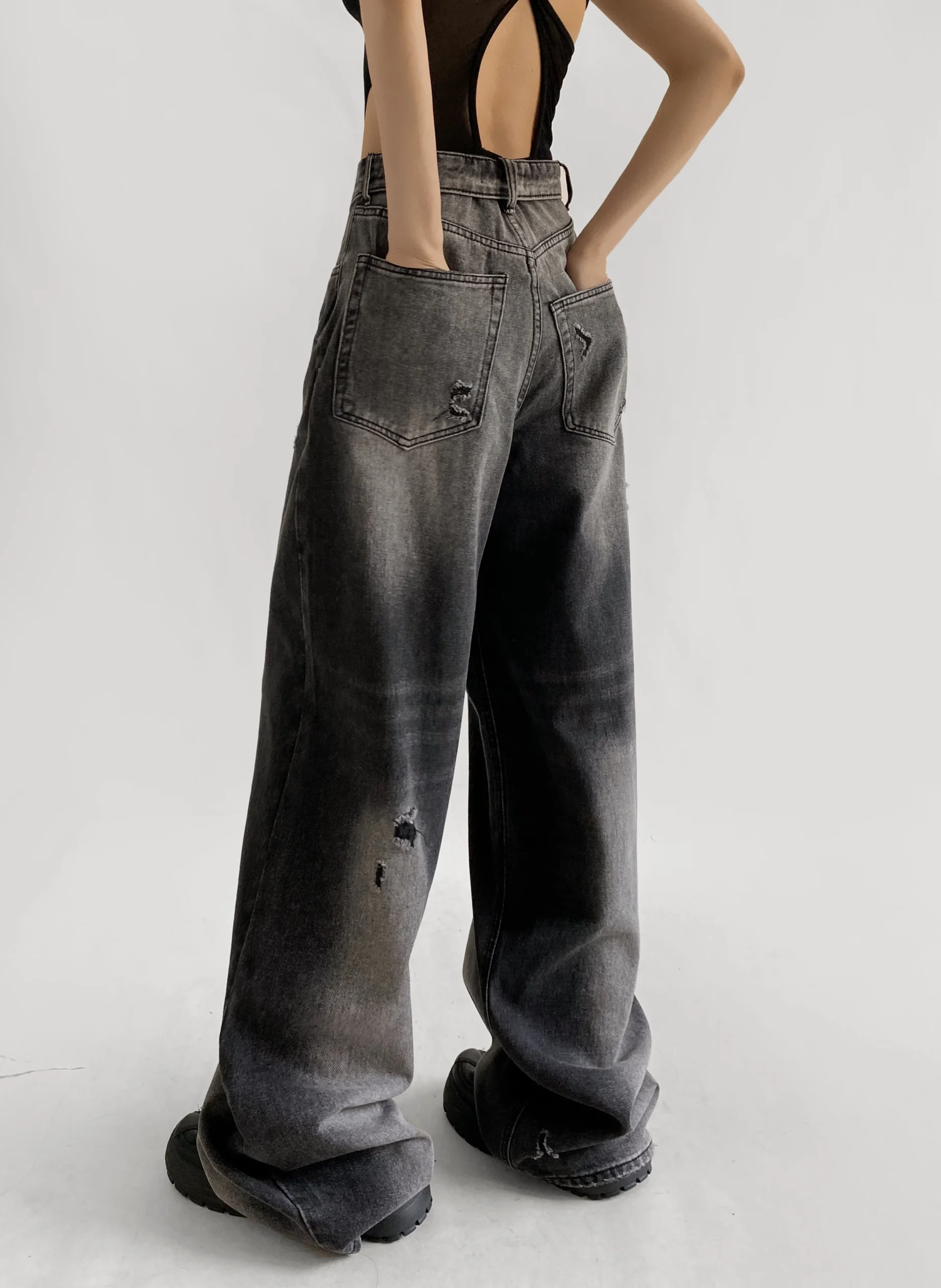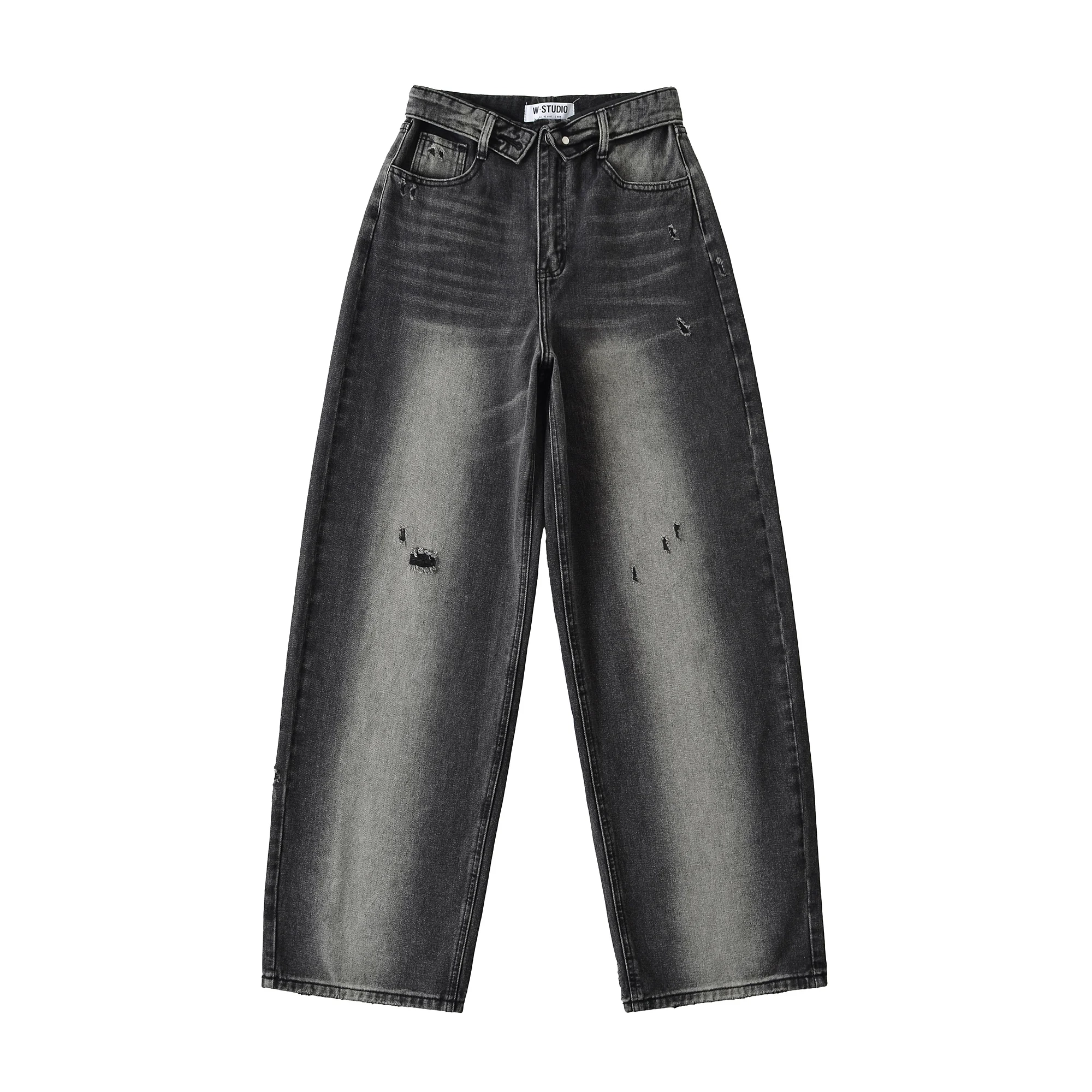 Women’s High-Waisted Flared Wide-Leg Denim Pants Long Jeans Hole Design & Back Pockets, 3 Colors