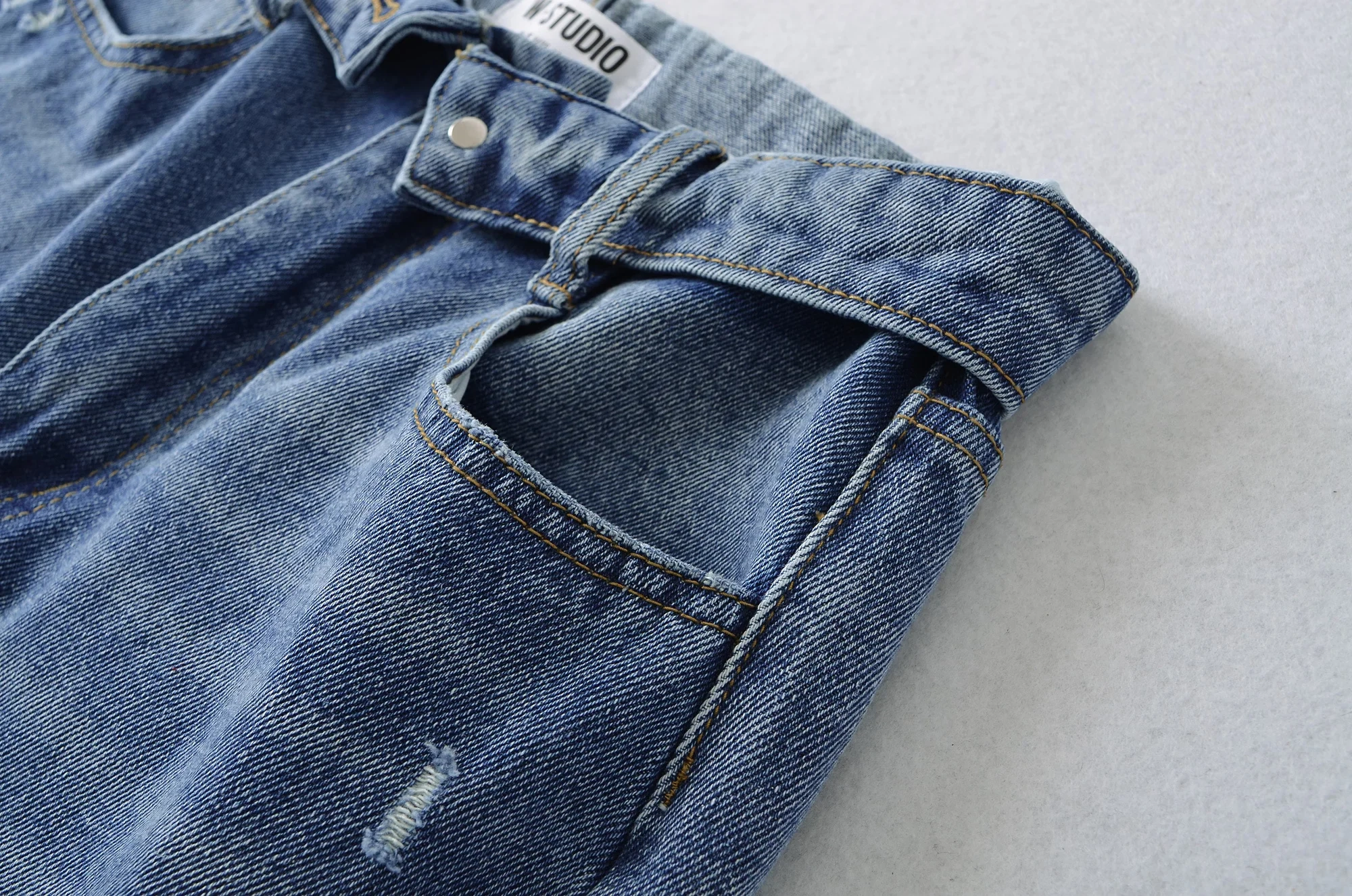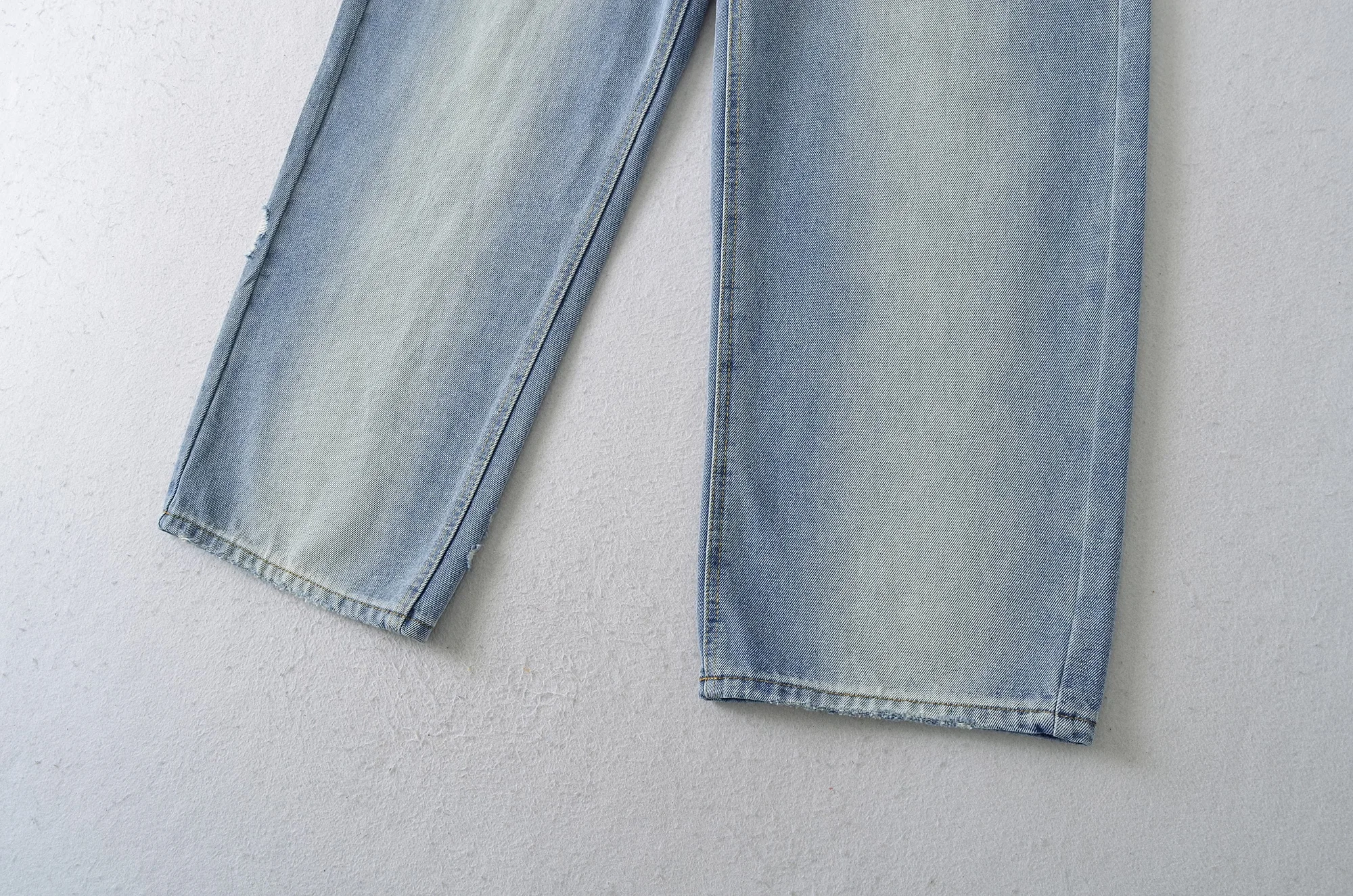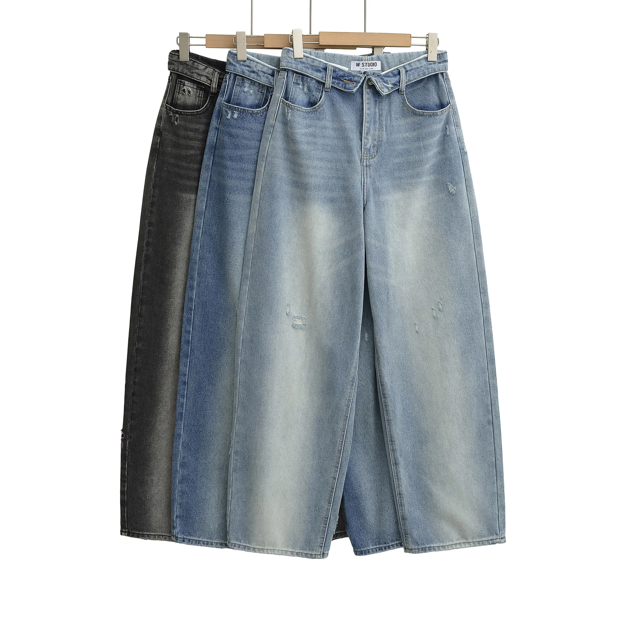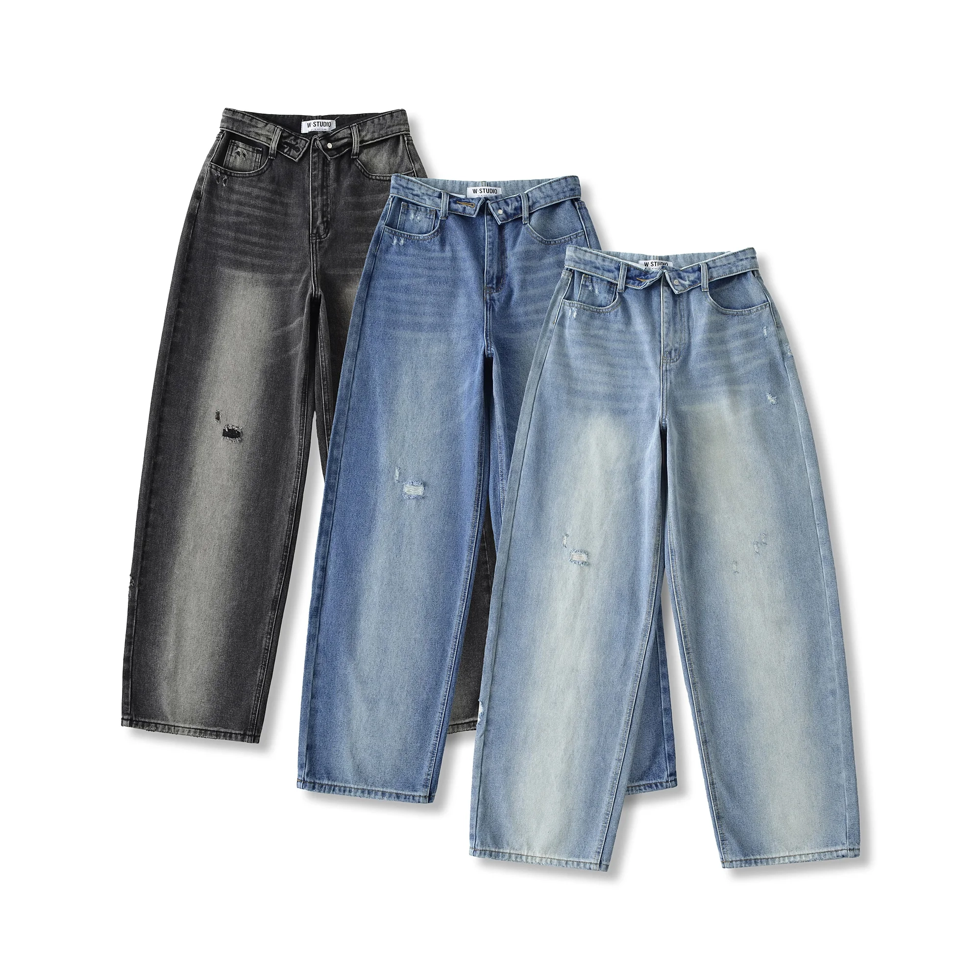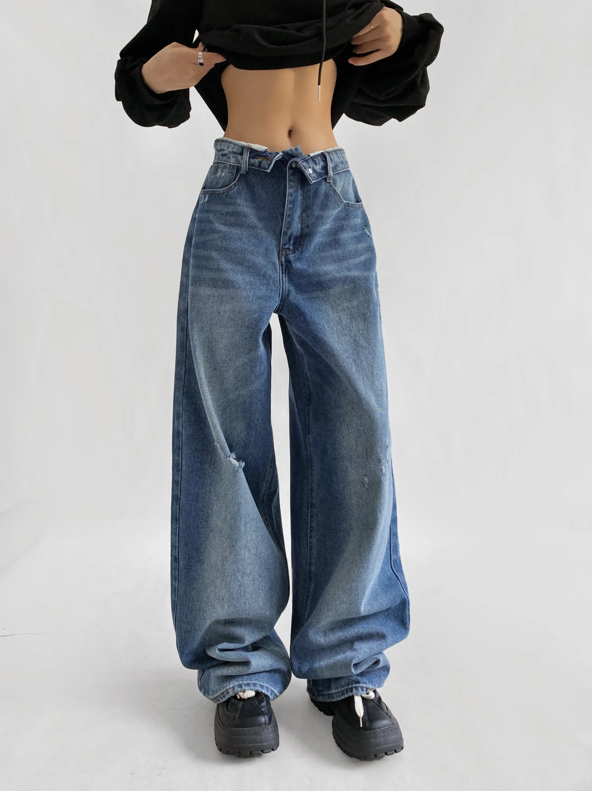 Women’s High-Waisted Flared Wide-Leg Denim Pants Long Jeans Hole Design & Back Pockets, 3 Colors