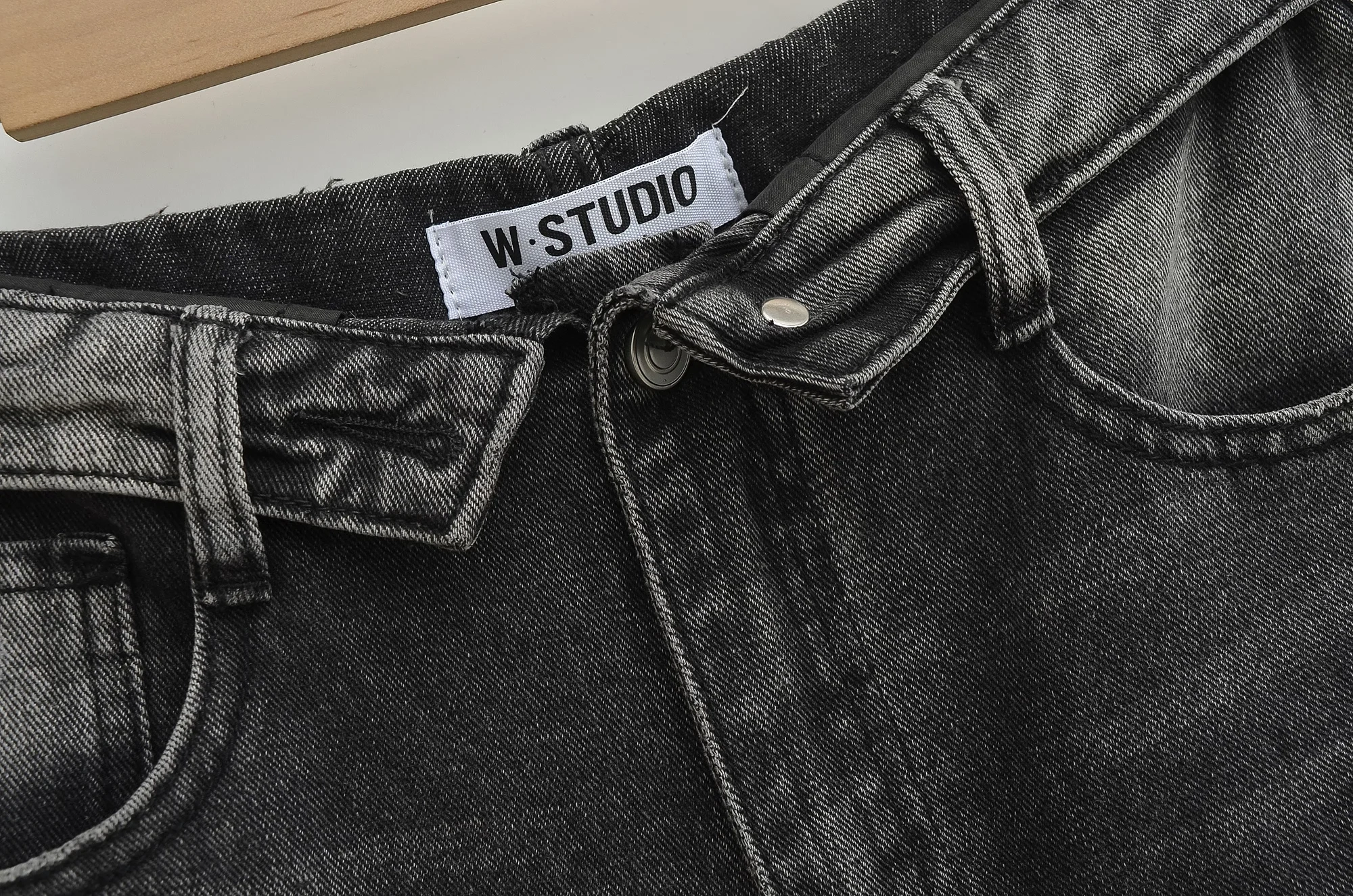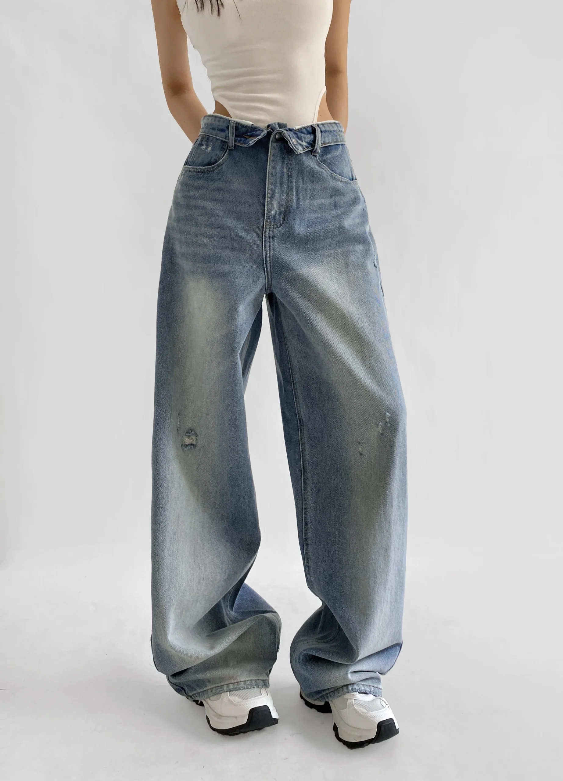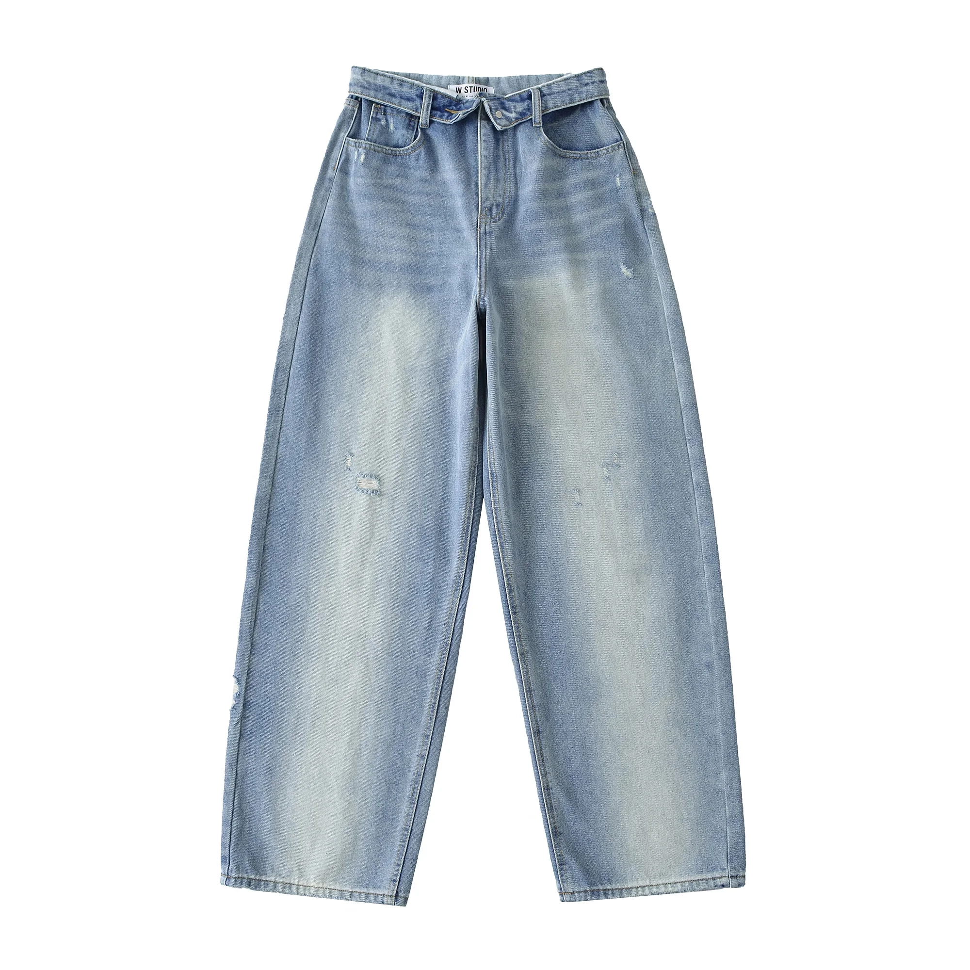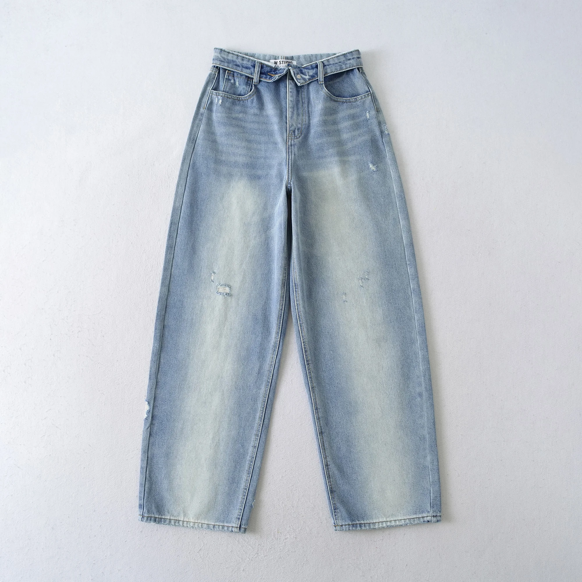 Women’s High-Waisted Flared Wide-Leg Denim Pants Long Jeans Hole Design & Back Pockets, 3 Colors