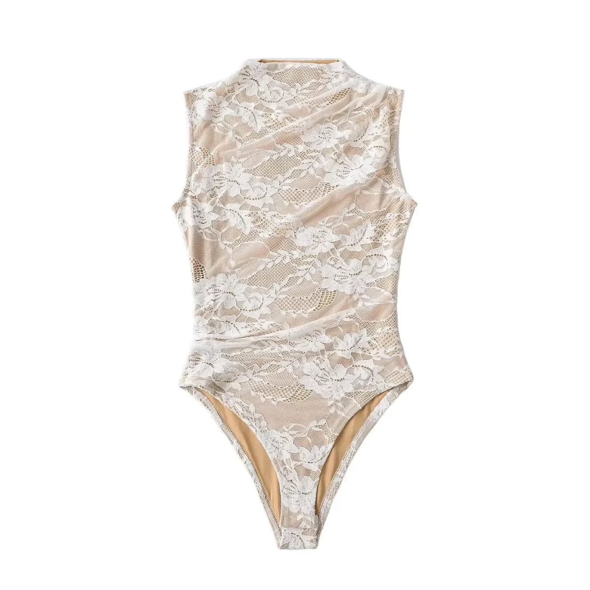 Women’s Sleeveless O-Neck Lace Bodysuit
