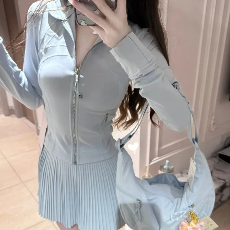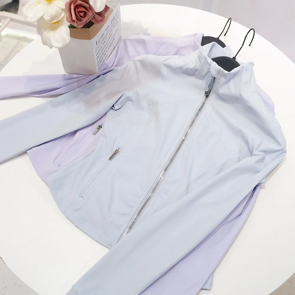 Women’s Stand Collar Silver Zipper Quick Dry Yoga Jacket