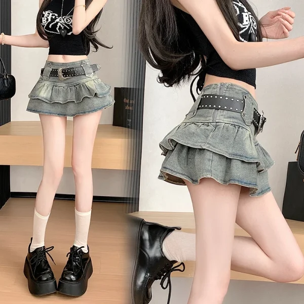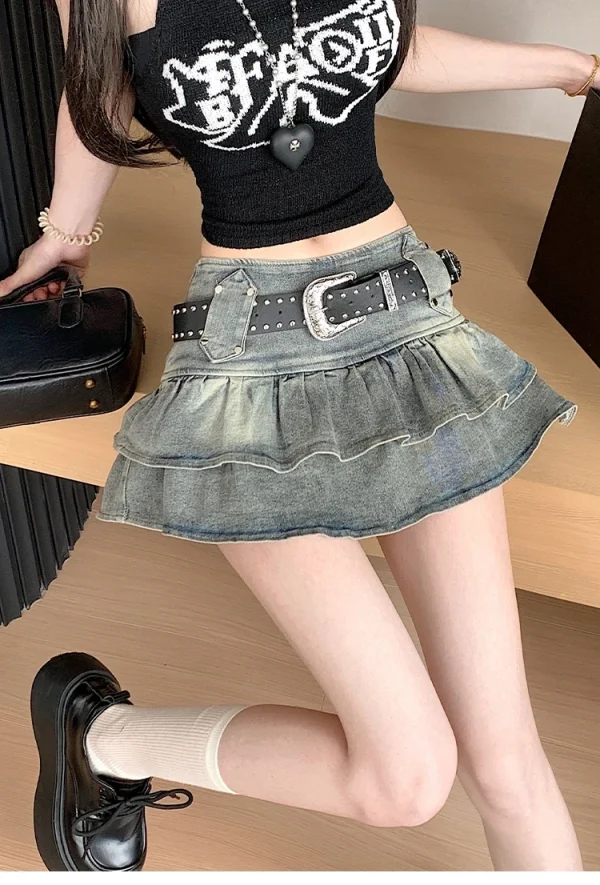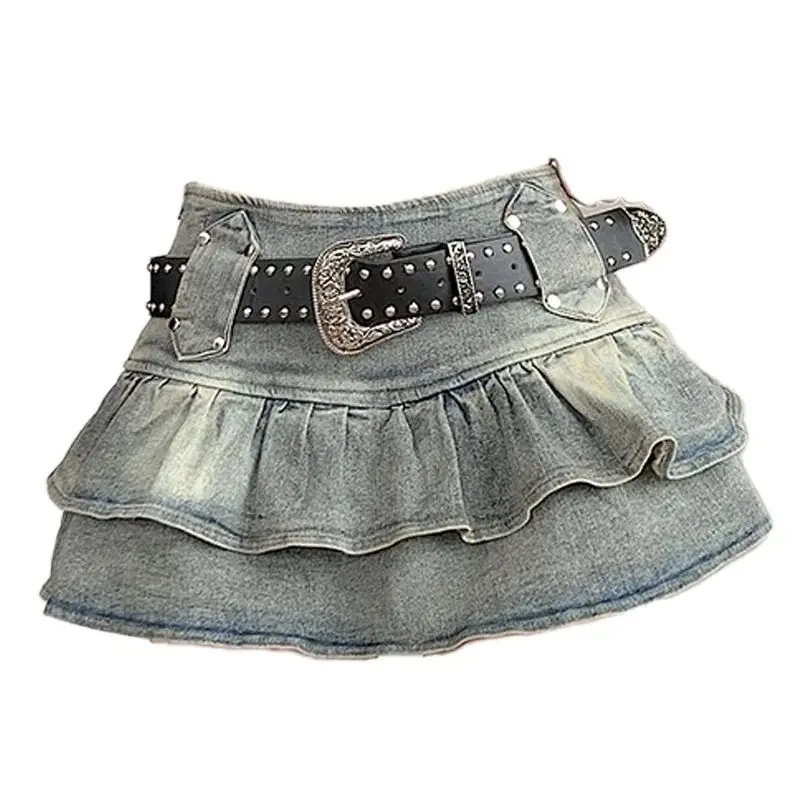 Women’s Vintage Blue Layered Denim Mini Skirt Y2K Harajuku High Street 2000S Style A-Line Sexy Short Skirts Fashion Clothing New